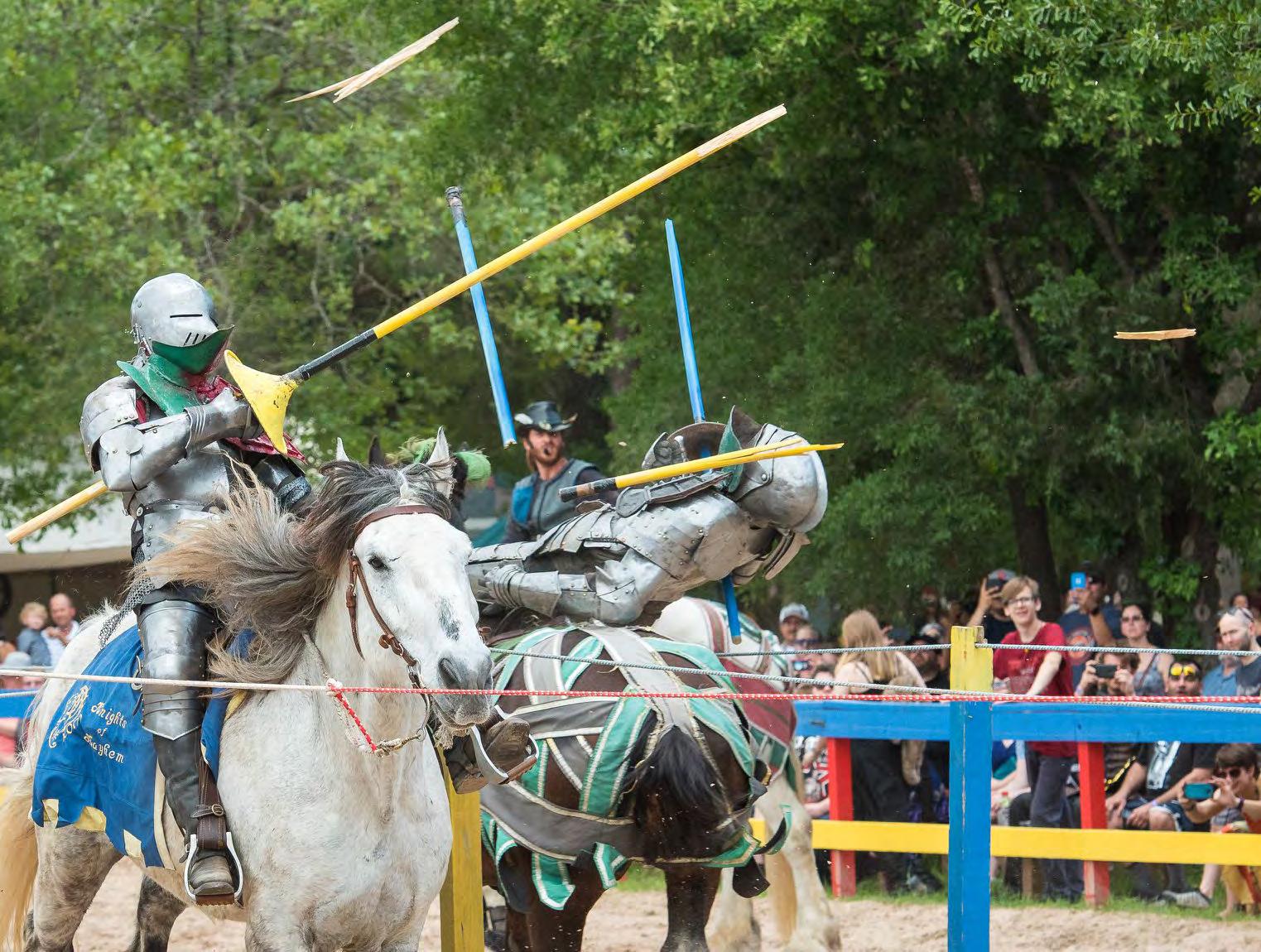 8 CURRENT | March 8 – 21, 2023 | sacurrent.com Open Weekends: Mar 4 – Apr 23 & Fri Mar 17, 2023 10 AM To Dusk Rain Or Shine | No Pets -Camping AvailableLocation 1883 Old Hwy 20 Mcdade, Tx 78650 35 Miles East Of Austin -Or2 Hrs Northeast Of San Antonio Entertainment Join Robin Hood & Lady Marian as they host full contact jousting, falconry, swordplay, archery, juggling, comedy, theater & more. Medieval England comes to life in Central Texas. Artisans + Merchants We host a grand selection of hand-crafted goods in Central Texas. We offer demonstrations like glass blowing, blacksmithing, pottery spinning, leather armor making, weaving, jewelry & art creation, & others. Song + Dance You'll find minstrels, bards, storytellers, magicians, jugglers, & all types of performers strolling our lanes & playing on our stages. If you're lucky, you may spot a faery or two! Food + Drink From trenchers weighty with tasty fare to tankards overflowing with foamy mead, there's plenty to eat and drink at Sherwood Forest Faire. You'll discover medieval treats & delicacies. Tickets On Sale Now At www.SherwoodForestFaire.com | (512)222-6680 | Follow Us On 14th Annual