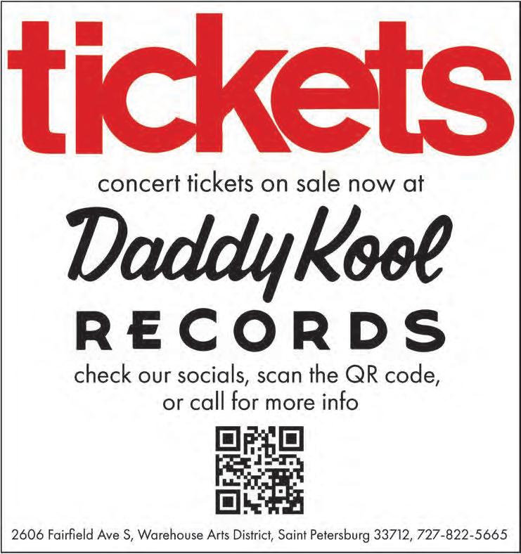 C After The Movies Presents: Right On Time w/Risk Averse/Al Torcia & The Tattered Saints The new concert series inside Sun-Ray Cinema at Tampa’s former University Mall rolls on this weekend, with Right On Time leading the charge. The Tampa pop-punk and emo outfit’s 2023 LP, Strange Sounds From Seminole Heights , is a highlymelodic throwback to the golden days of Hot Topic, and for this gig the band finds itself joined by bouncy punk project Risk Averse and longtime Bay area songwriter Al Torchia and his ever-evolving band The Tattered Saints. 9 p.m. $10. Sun-Ray Cinema, Tampa