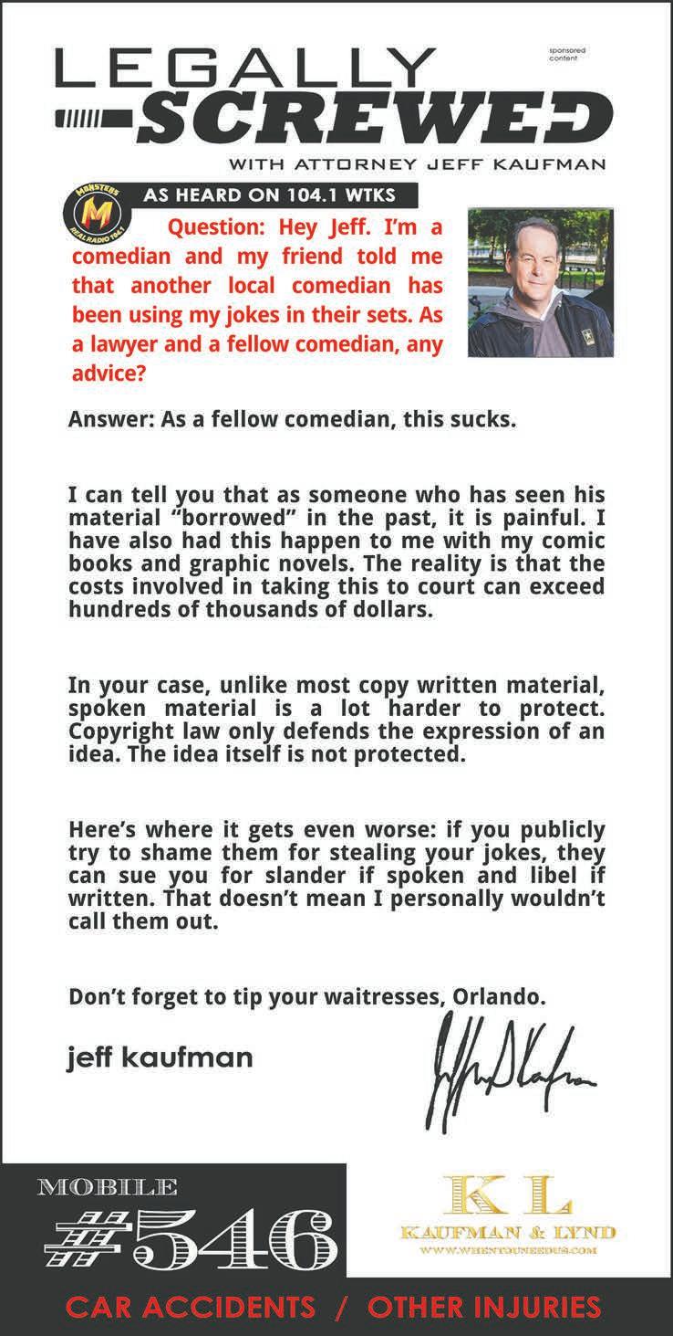 Contributors Rob Bartlett, Rob Brezsny, Melissa Perez Carrillo, Kieran Castaño, J.D. Casto, Ida V. Eskamani, Jacquelin Goldberg, Shelton Hull, Holly V. Kapherr, Grayson Keglovic, Faiyaz Kara, Seth Kubersky, Jim Leatherman, Matt Keller Lehman, Bao Le-Huu, Gabby Macogay, Anthony Mauss, Dan Perkins, Leah Sandler, Steve Schneider, Nicolette Shurba, Ian Suarez, Chelsea Zukowski