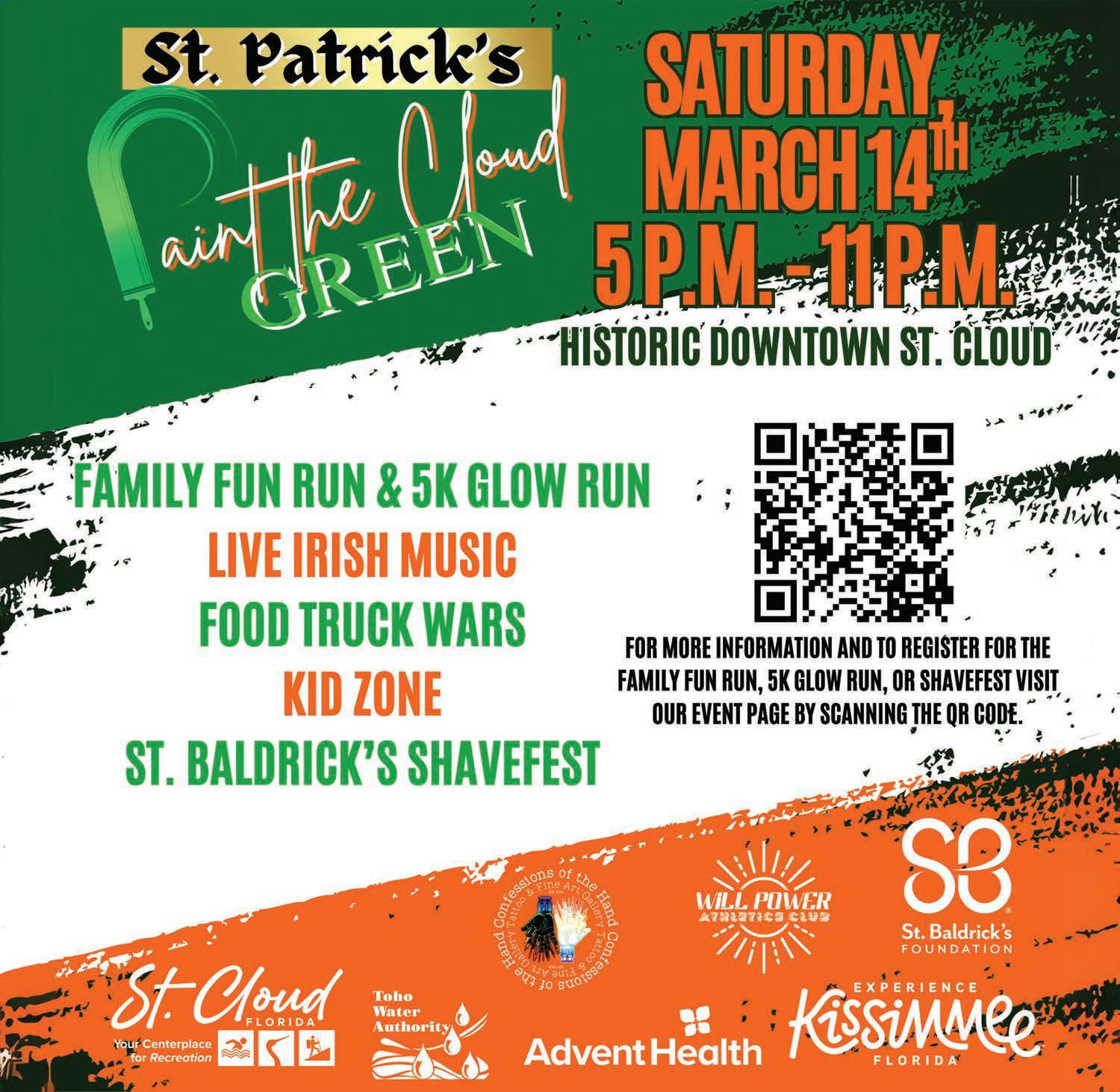Bar Crawl Join us for the ultimate St Paddy’s Bar Crawl in Orlando, where good vibes, green drinks, and festive fun collide! Saturday 4 pm; Underground Public House, 19 S. Orange Ave.; $13.61; 612-460-0094.