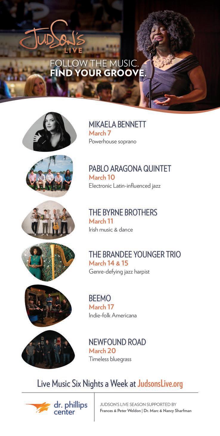 Maitland’s street party returns March 6 with live music from the band Switch, food trucks, vendors and a bounce house. Admission is free. Bring chairs for seating in front of the stage. Friday 6-9 pm; Independence Square, 1776 Independence Lane, Maitland; free; 407-539-6268; itsmymaitland.com.
