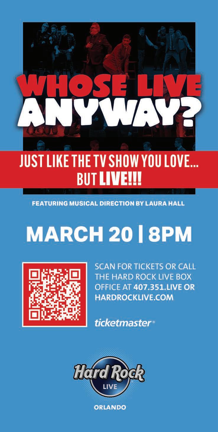 Luck in Bloom: A Spring Fling Casino Night The Orlando Elks Lodge 1079 is hosting a lively springthemed casino night featuring casino-style games, raffles and a silent auction. This event is open to the community and promises an enjoyable evening of entertainment in support of the Elks’ charitable efforts. Saturday 6 pm; Orlando Elks Lodge 1079, 12 N. Primrose Drive; $25-$40; 321-945-0611; orlandoelks. com.