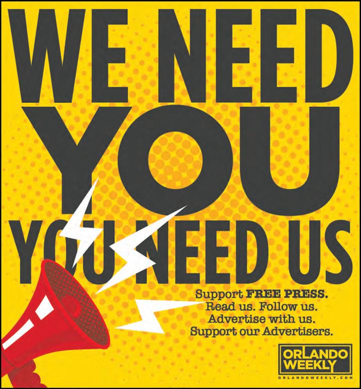 Copyright notice: The entire contents of Orlando Weekly are copyright 2022 by Euclid Media Group LLC. Reproduction in whole or in part without written permission of the publisher is prohibited. Publisher does not assume any liability for unsolicited manuscripts, materials, or other content. Any submission must include a stamped, self-addressed envelope. All editorial, advertising, and business correspondence should be mailed to the address listed above.