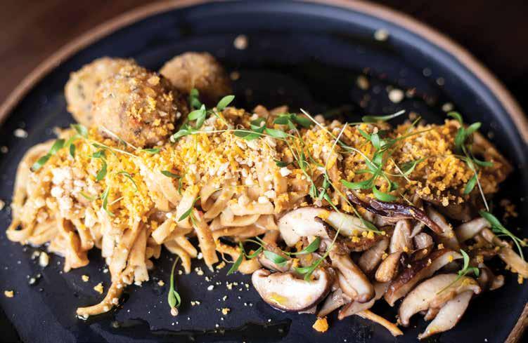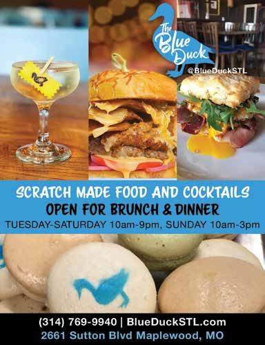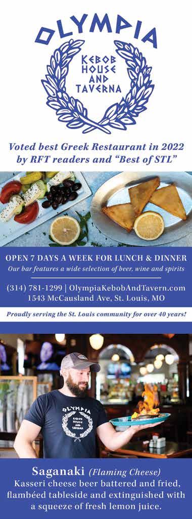 For some top-notch smash burgers, look no further than Jack Nolen’s (2501 South Ninth Street), which serves its crispy-on-the-edge, meltyin-the-middle patties on potato buns. Owner Jim Grindstaff has been studying burgers for a while — even blogging about them — and has perfected a blend of chuck, short rib and brisket to create a quintessential burger patty. You can stack it up with a triple cheeseburger or get spicy with a Firecracker Burger complete with jalapeño relish. Not into meat? Check out the pesto grilled cheese or plant-based chicken nuggets. Or order the fries, which are a meal in their own right. We recommend the Bluetine Fries, a play on Canadian-style poutine. These are still covered with brown gravy, but instead of cheese curds, you get blue cheese crumbles on top. The no-frills Soulard establishment doesn’t have a phone, but you can order takeout online or dine in person. $. Closed Monday. Open Tuesday to Saturday 11 a.m. to 10 p.m. and Sundays 11 a.m. to 5 p.m.