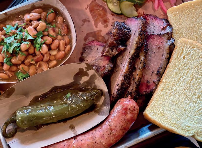 Best bets: Brisket, sausage, turkey sliders, green bean salad, vinegar slaw, borracho beans.