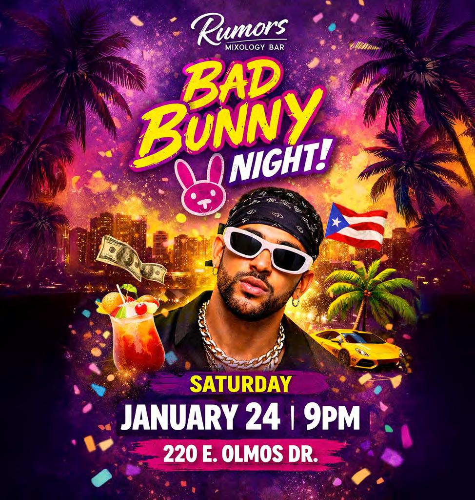 Three bands from Austin are filling up a strong Lonesome Rose bill. Big Bill is a propulsive rock band that specializes in uncomfortable medita tions on modern American life, not unlike early Talking Heads or Devo but in a more modern package. Como Las Movies, meanwhile, plies next-generation cumbia, which should please to SA ears. Nelson Valente Aguilar fronts the group, which mixes psychedelic excursions with groovy Latin percussion. Opener Death Palmz cranks out wild, synthy post-punk, because why not? $10, 9 p.m,. Lonesome Rose, 2114 N. St. Mary’s St., (210) 455-0233, thelone somerosesa.com.