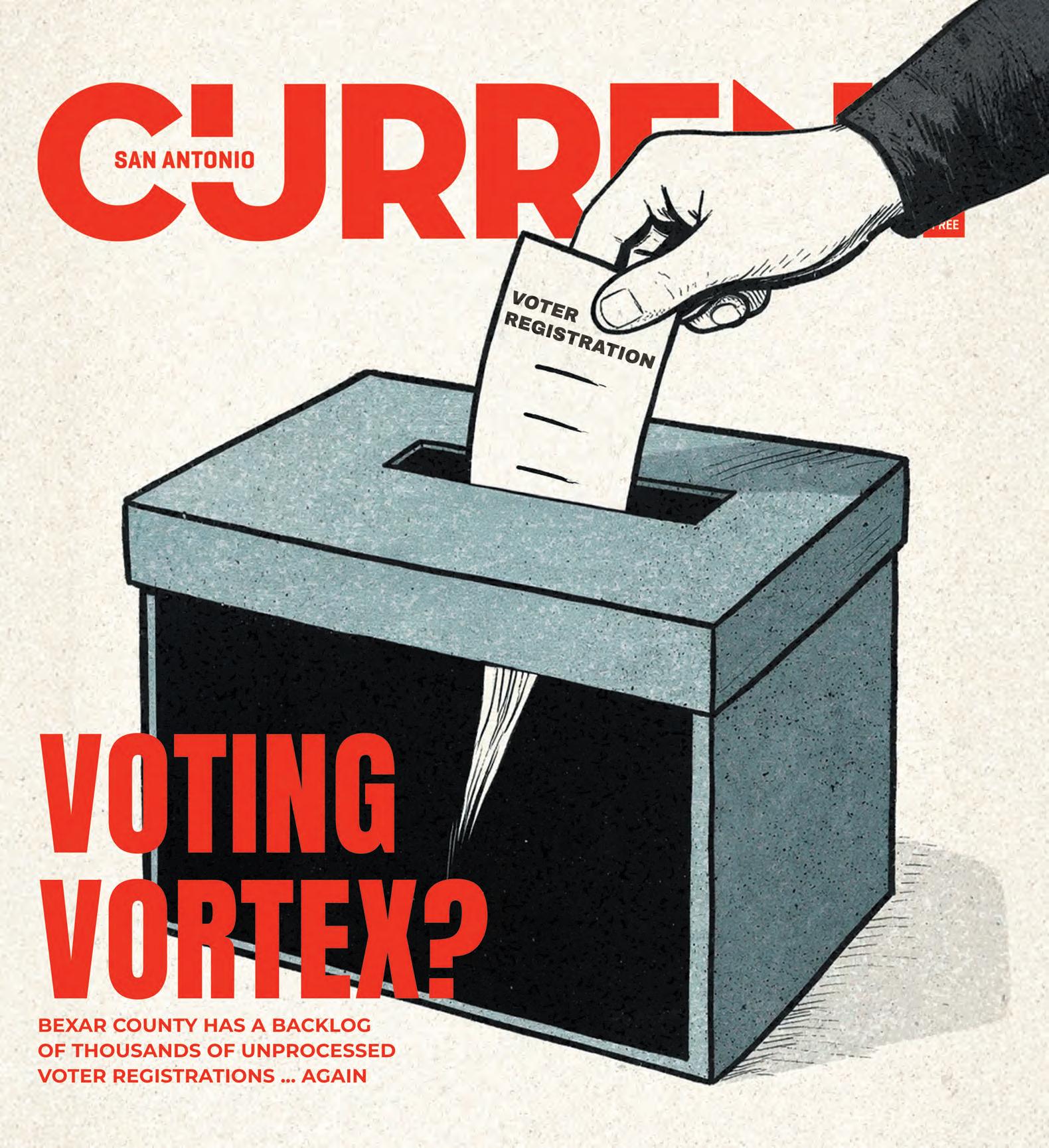 On the Cover: As another Bexar County voter registration backlog builds, Precinct 4 Commissioner Tommy Calvert accuses the Texas Secretary of State’s Office of deliberate voter suppression. Design: Ana Paula Gutierrez.