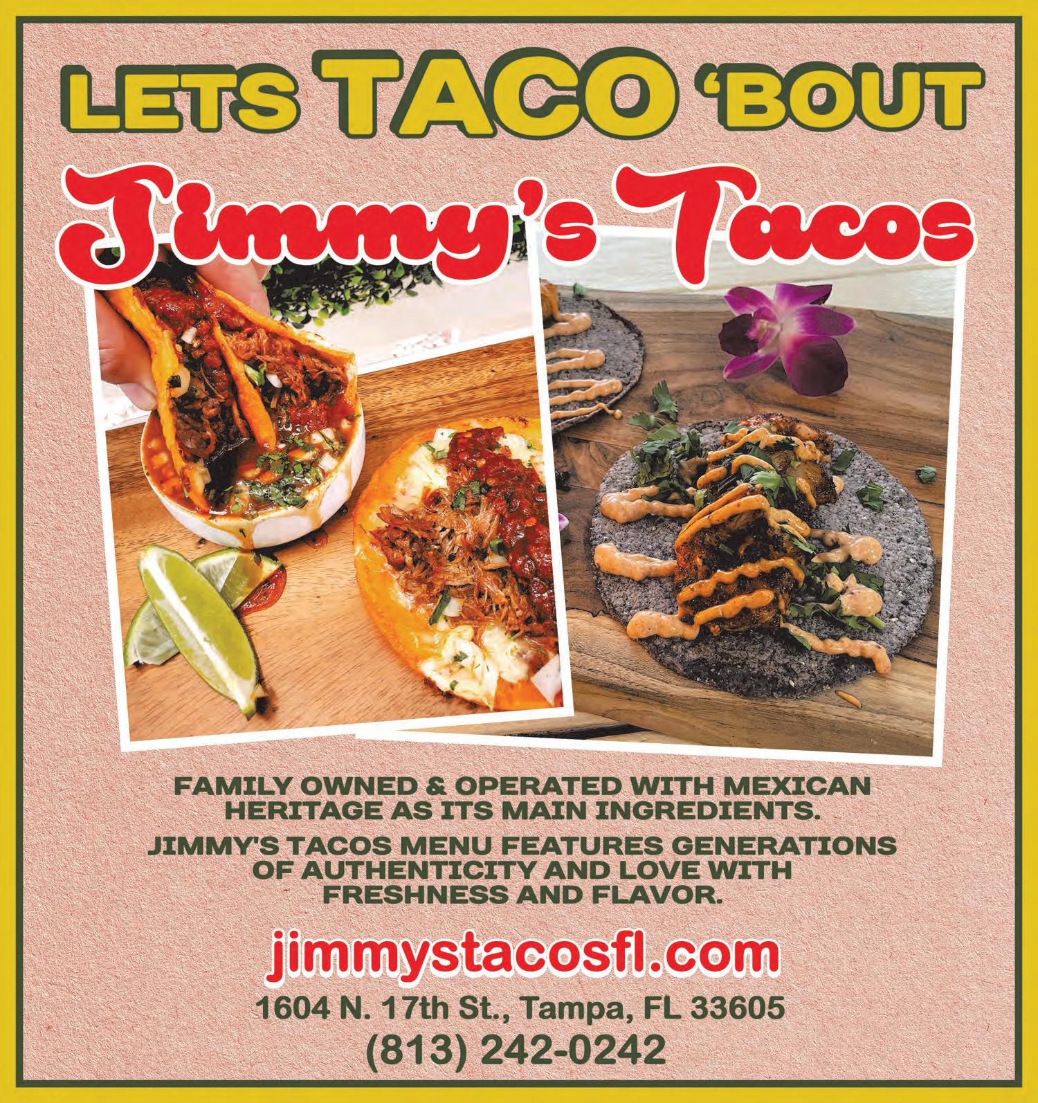 66 | JUNE 15-21, 2023 | cltampa.com 200 E MADISON ST • DOWNTOWN TAMPA • 813-221-TACO TACO TU EsDAY HAPPY HOUR AT AMSO Monday - Friday, 4pm-7pm Saturday 3pm-6pm $4, $5 & $6 Liquor, Beer & Wine $8 Hand-Cra ed Cocktails Thai Flavors & Tiki Cocktails from one of the Bay Area's Best! OPEN FRIDAYS + SATURDAYS FROM 6PM - 10PM 730 Broadway / Dunedin / (727) 221-5444