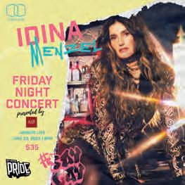 Meet Me @ The Altar— which plays the big St. Pete Pride Parade concert on Saturday (see more on p. 50)—is just the tip of the spear when it comes to St. Pete Pride’s stacked entertainment calendar, and other big names on the bill include Carson Kressley, Malaysia Babydoll Foxx, Ts Madison and more. Idina Menzel (pictured) hasn’t really toured since a 2018 run of arena shows with Josh Groban. It’s been six years since she’s been to town. Later this year, she will release her seventh studio record, Drama Queen , a dance album described as a love letter to the LGBTQIA+ community, as well as a children’s book, set for release in September. St. Pete Pride pre-party concert.