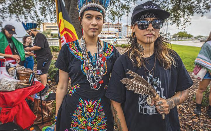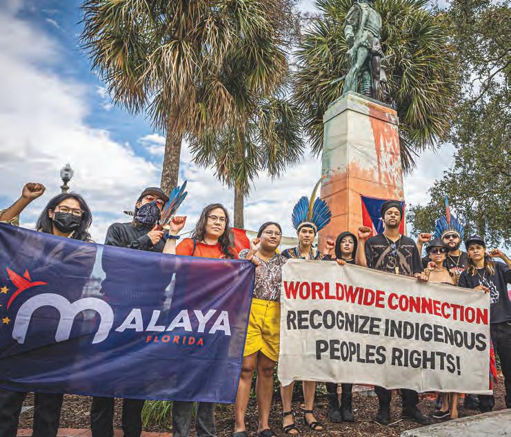 Last Saturday, around 40 activists gathered at Columbus Statue Park in South Tampa to pro test Tampa’s glorifying monument to a man who was a confirmed pedophile, rapist and slave trader. After the speakers discussed the ills of colonialism and the devastating impacts it has caused from Southeast Asia, to the Middle East, to Africa and Central and South America, pro testors dipped their hands in fake blood and pressed the blood against the monument. Indigenous activists have been protesting the statue for 30 years, but received very little response from city council people and mayors of the past. And there's been no response this year from Mayor Jane Castor's administration and city council. That's despite the fact that Indigenous People's Day is now recognized federally and in several cities and states. Columbus statues have even been removed in several locations across the country. See more photos via cltampa.com/slideshows, and read the full report on p. 12.—Justin Garcia
