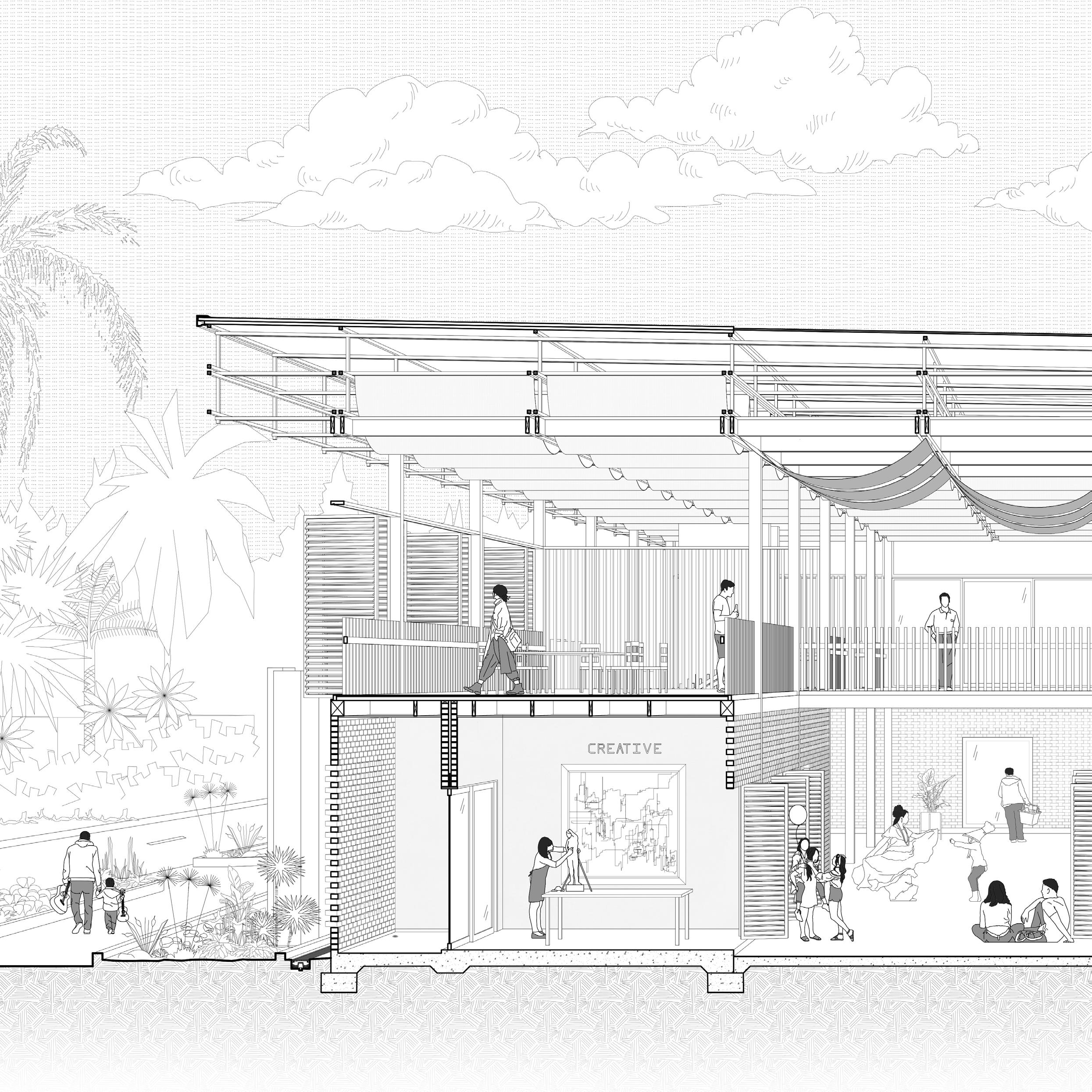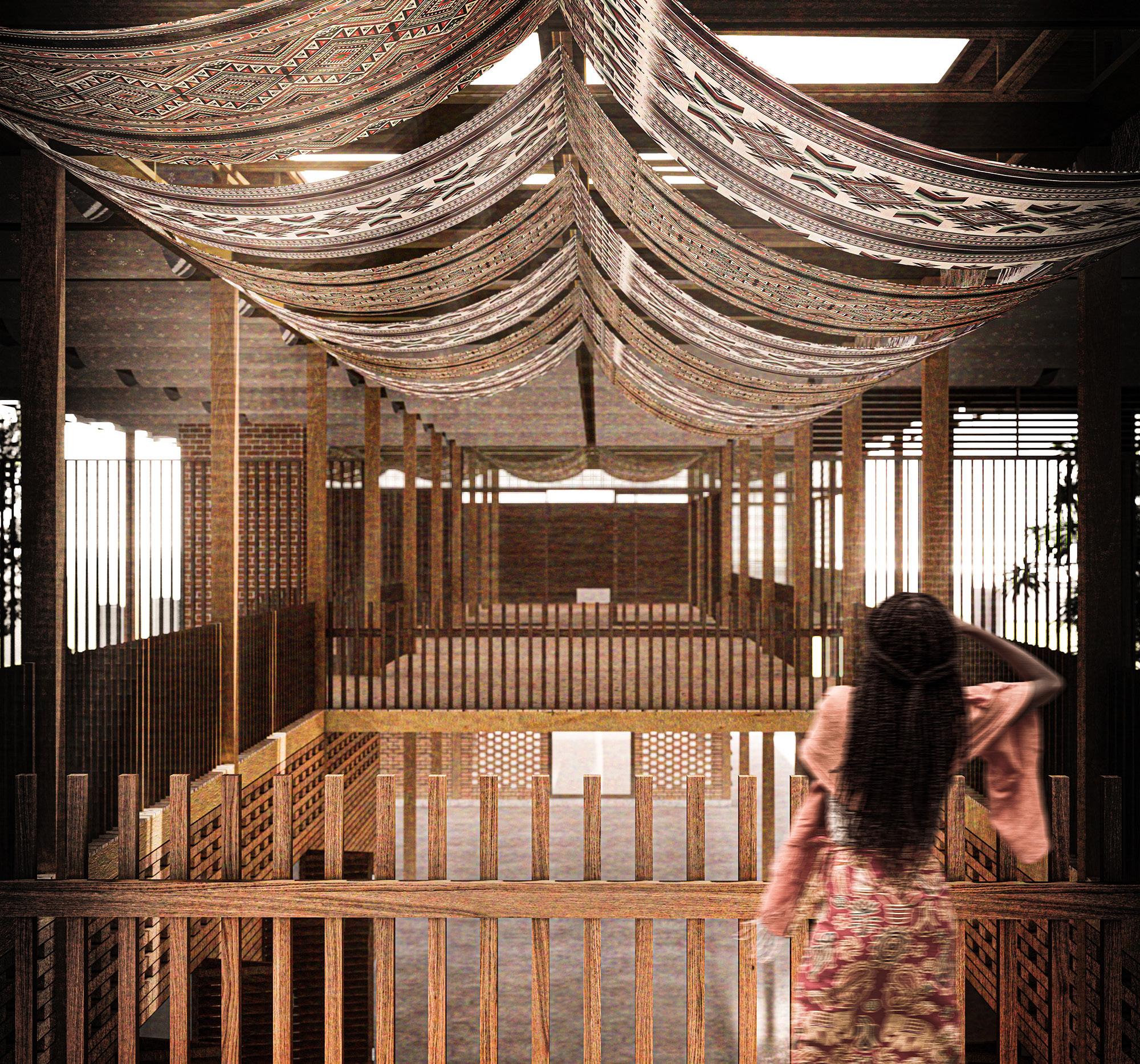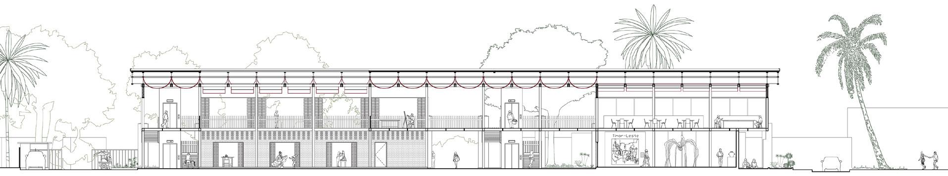By retaining key elements of the site and drawing inspiration from the revered Uma Lulik and symbolic Tais, the architectural design embodies the ‘Inheritance’ ethos, integrating indigenous elements and mountainous forms. The site’s three volumes and organic landscaping symbolize the coexistence of nature and tradition. The Design Library, with its dynamic public spaces and private artist residences, reflects Timorese culture’s vitality.