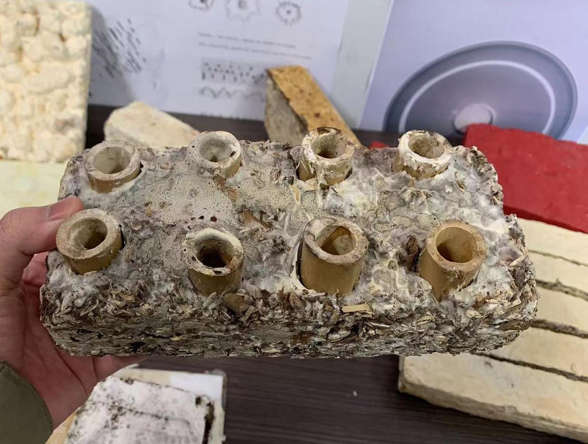 The final product is lightweight, biodegradable, and can be used for insulation, packaging, panels, or experimental architecture.