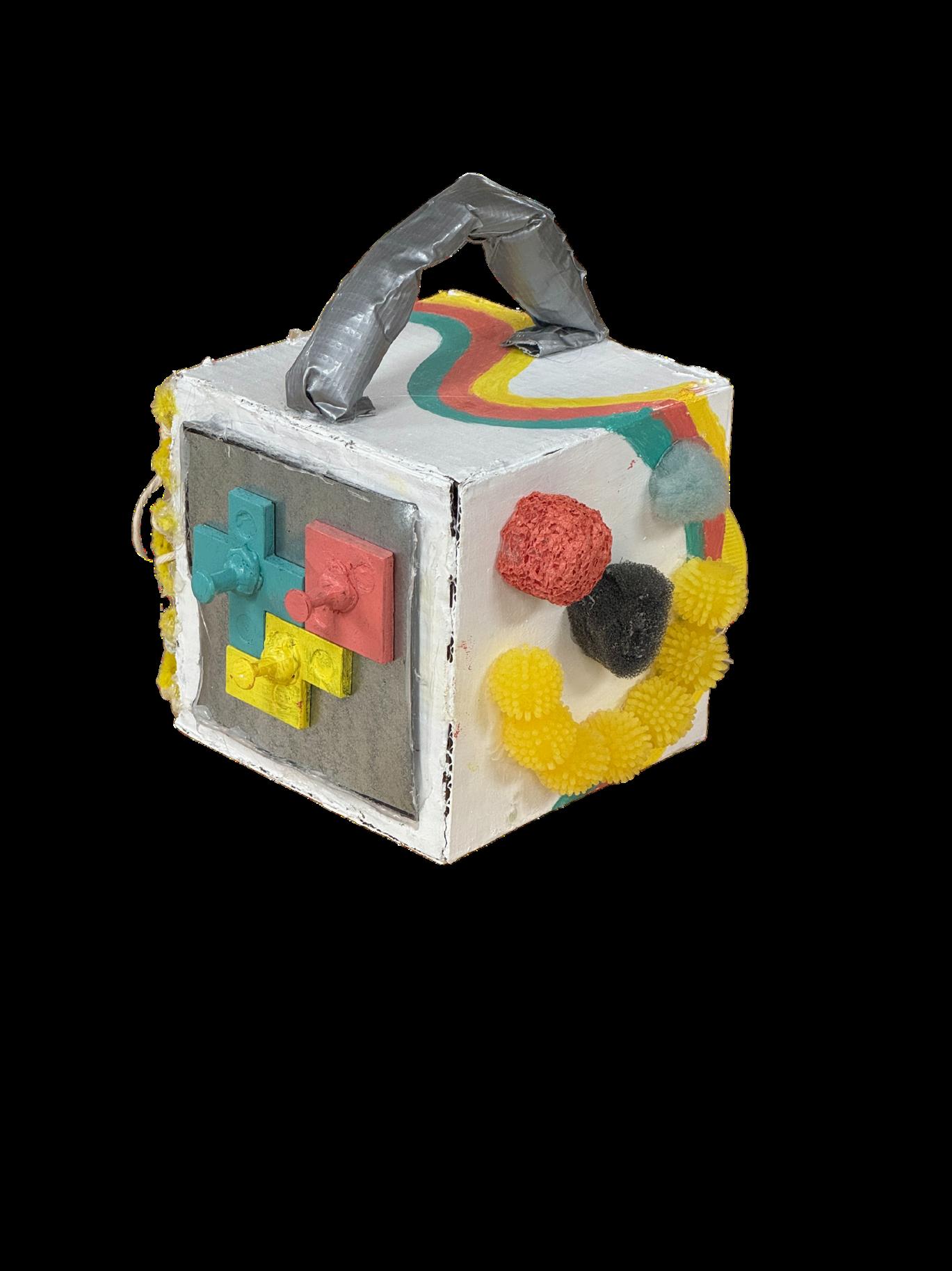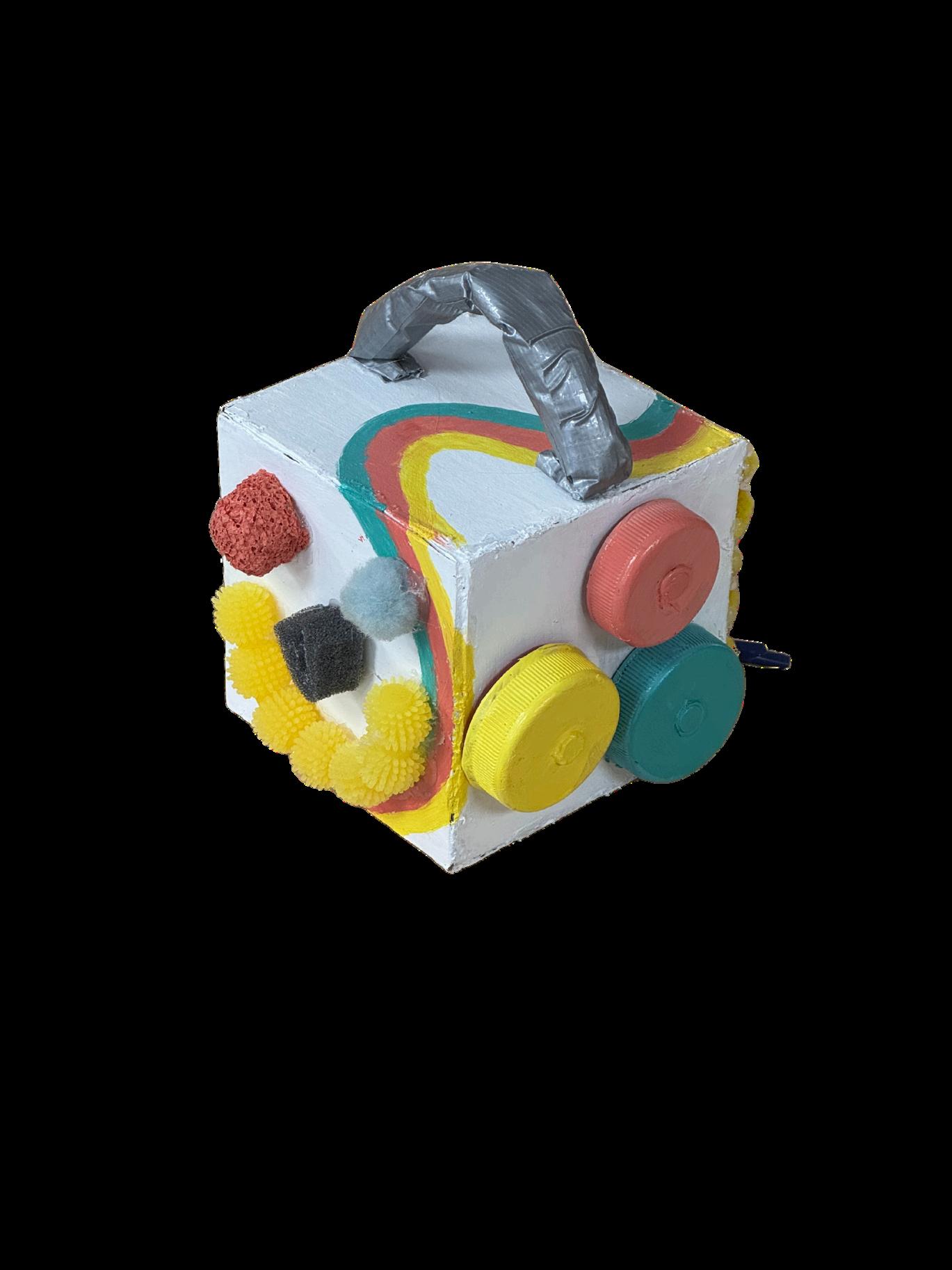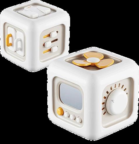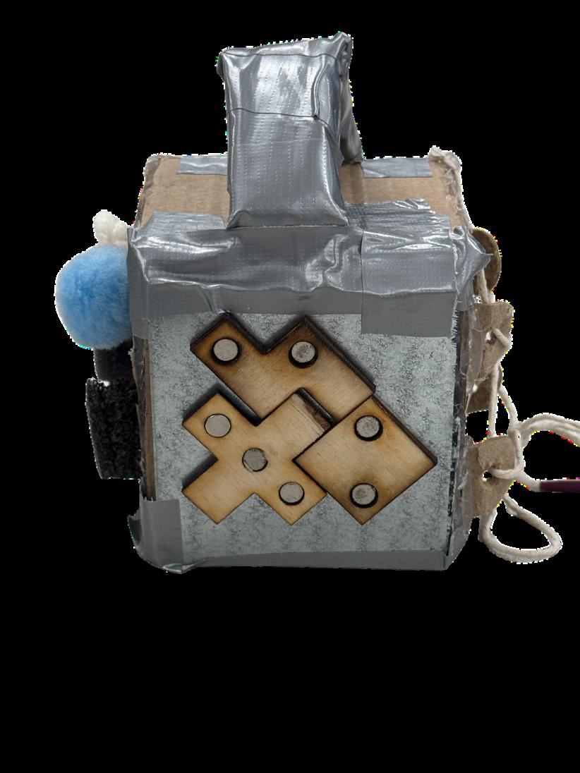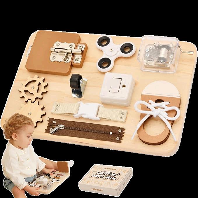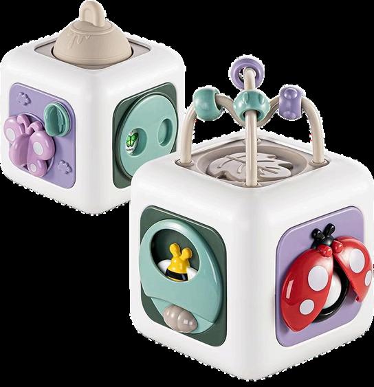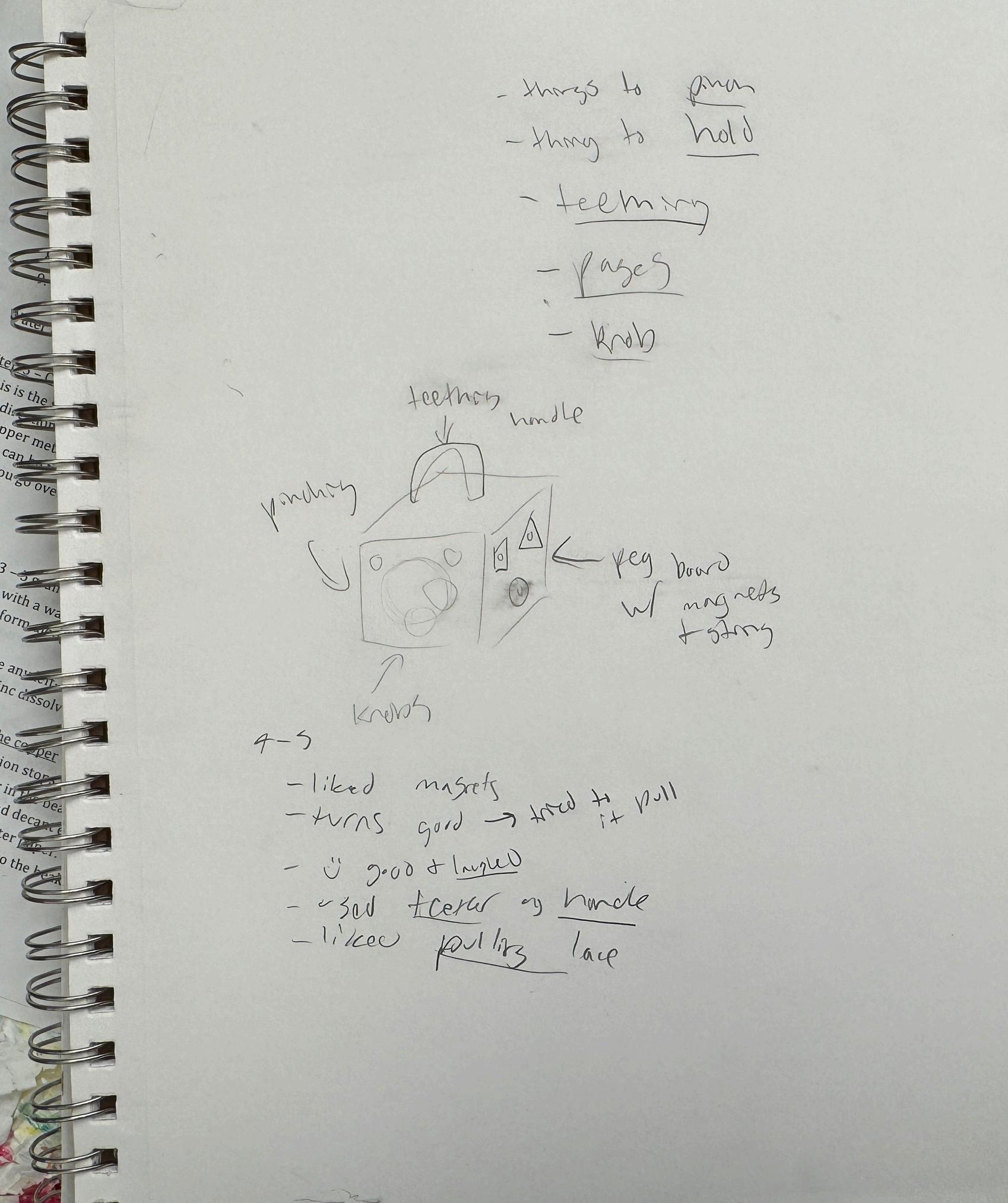+ magnetic puzzle + spinning & pulling out caps + pulling strings + smiley face ☺ - magnets came out - caps could have came out (nails!) - strings were hard to pull