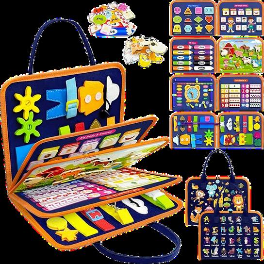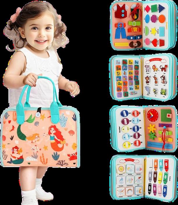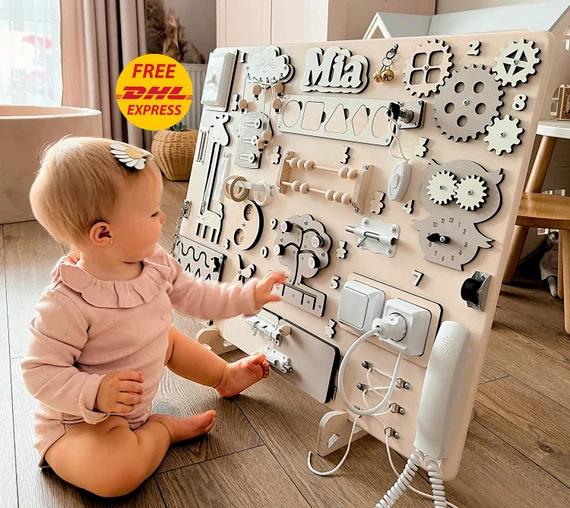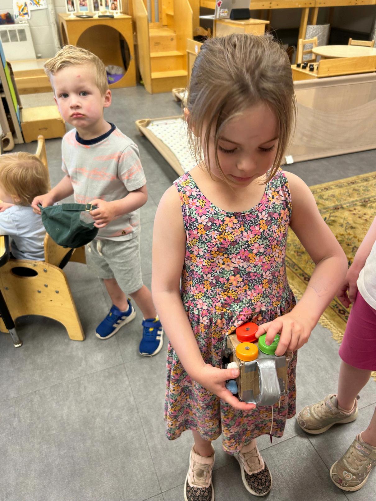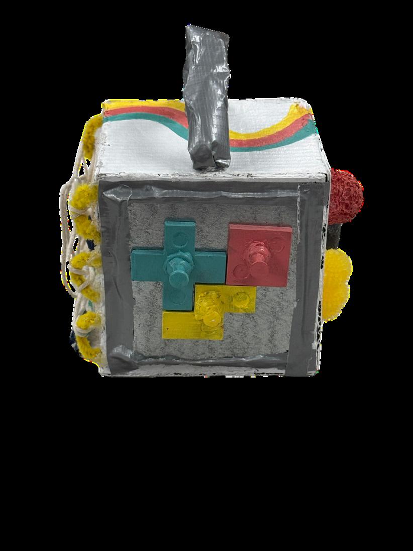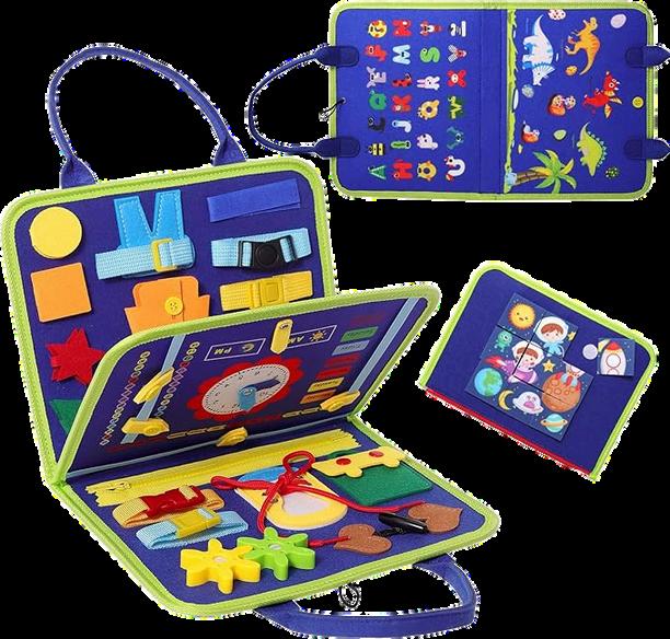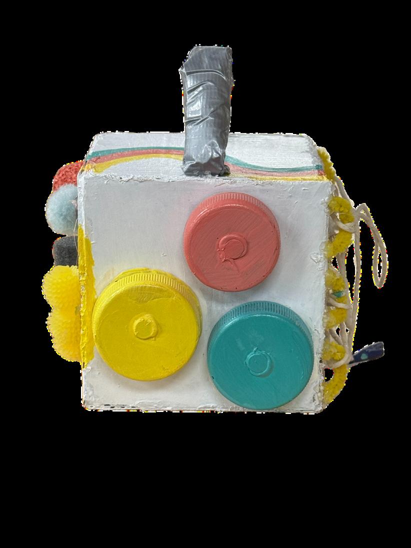 + magnetic puzzle + spinning & pulling out caps + pulling strings + smiley face ☺ - magnets came out - caps could have came out (nails!) - strings were hard to pull