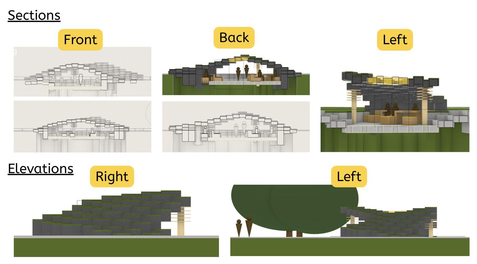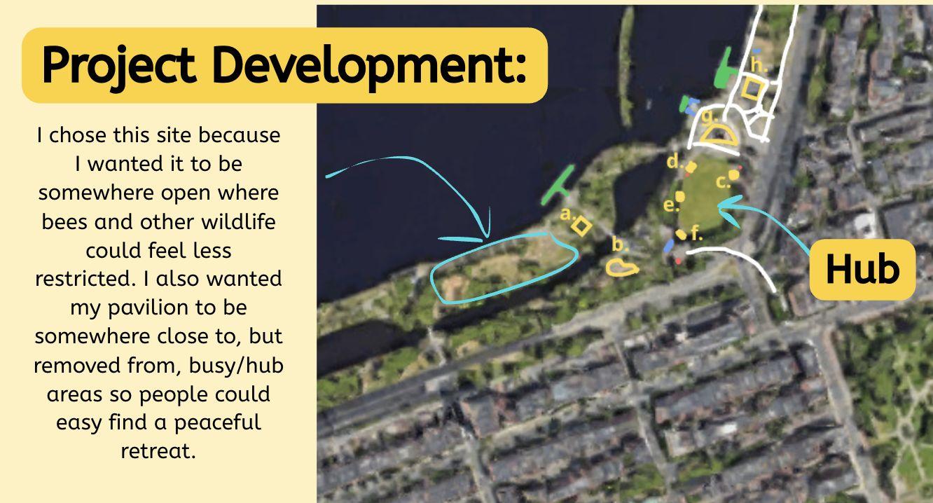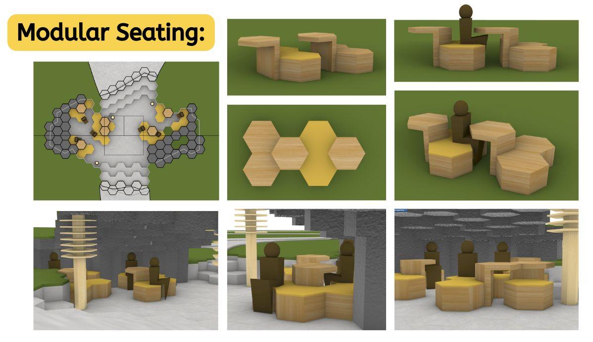 Thisfinalprojecthelpedmelearntheimportanceoflettingyourselfexperimentindesign.Firstofall,asI wasnewtoRhinoatthebeginning,everythingItriedwasnewandunfamiliar,butthroughexploration,trial anderror,andnotbeingafraidtofair,Iwasabletoeventuallymaterializemyvision.Additionally,Ijust reallyletmyselfexploremanynewpossibilitiesinmydesignitself.Iexperimentedwithmanythingssuchas elevationanduniqueroofshapesthatIneverhadtriedbefore.WhenIfeltlikesomethingmightbebettera differentway,Iletmyselfchangemydesign;evenifitwasdrasticallydifferent,Ididn'tholdmyselfbackand waswillingtoexploredifferentperspectives.Studyingbeesinspiredmetocreateastructurethatsomewhat mimickedtheexperienceofabee,soIcreatedmypaviliontoresembleabeehivethroughitshexagonaltiles aswellastheorganicshapedesignedtomaximizeairflow.Attemptingtointegratebeesintomydesignsalso reallyhelpedmydesignprocessasitgavemeamorecleargoaltostrivefor,promptingmetopursueavariety ofuniqueideassuchasthehoneycombpillars.Overall,Ilearnedthisprojecthashelpedmeunderstandthe valueofchallenges.Challenges,whethertheyarelearninganewprogramorfollowingspecific guidelines/restraints,provideexcellentopportunitiesforgrowth.Theypushyoutoaction,canserveas excellentinspiration,andprovidenewconceptstoexplore.