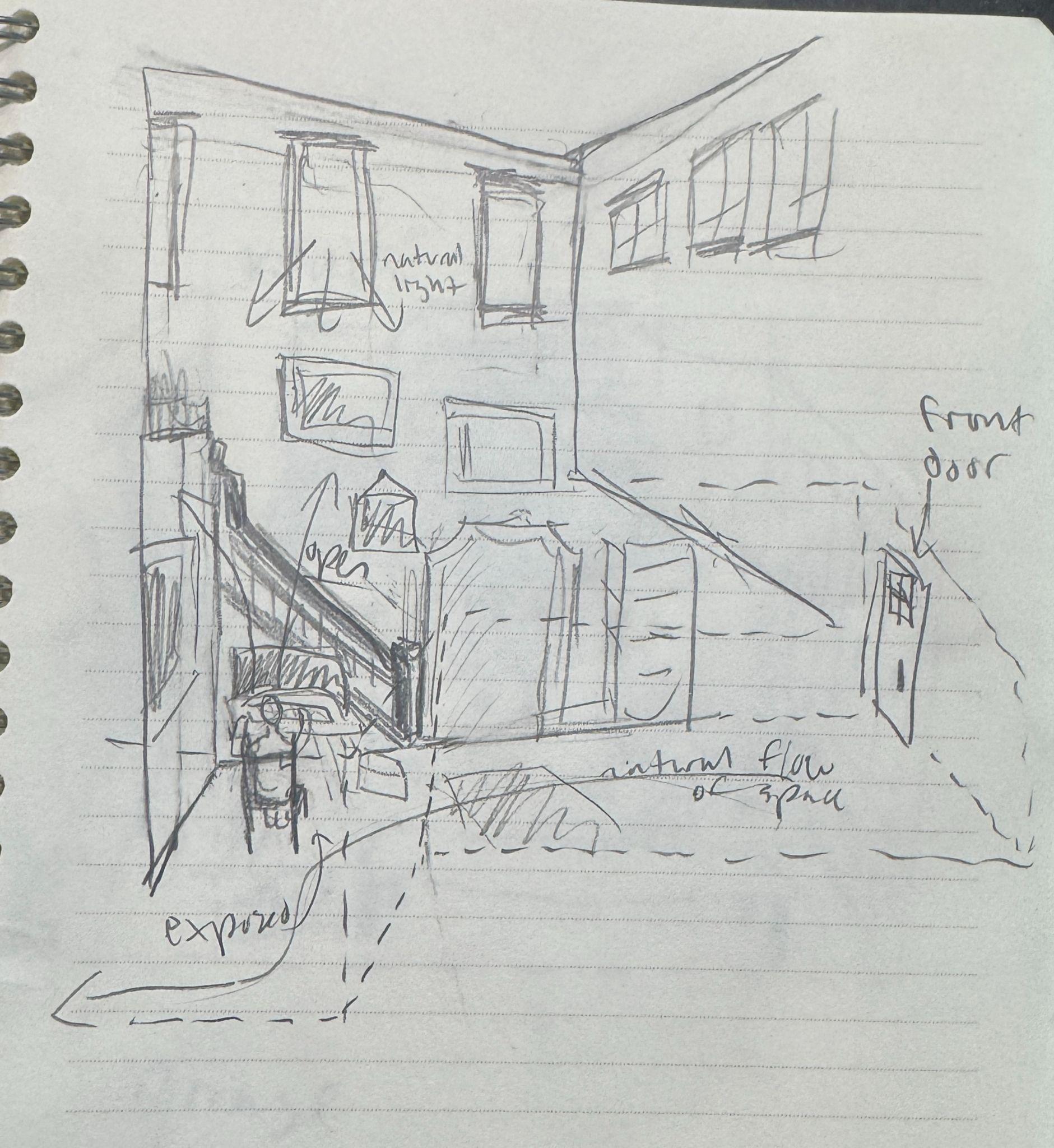 Throughpracticingmanydifferentarchitecturaldrawingsinthiscourse,Ilearnednewwaysto observetheworldaroundme.BythinkingabouthumanoccupationandhowIfeltinaspace whiledrawingthem,Igotbetteratconsideringtheuserexperiencewhilethinkingofaspace.I discoveredhowandwhydifferentpartsofthesamelocationcanlookverydifferentandgiveoff verydifferentexperiencesasaresult,whichisessentialtotakeintoaccountwhiledesigning structures.Ialsodevelopedmyabilitytoaccuratelydrawperspective,whichhelpedmebeginto understandbuildingsaroundme’sstructuremoreandrecognizeitinmydailylife.Itwasalso interestingtolearnmoreaboutsectionsandelevationsastheyarehelpfulinseeingbuildings fromnewperspectivesthatcaneasilybeoverlookedwhiledesigning.