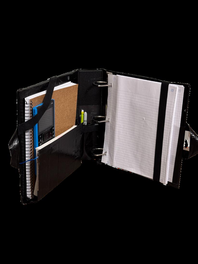 - provides additional storage for notebooks & books of many sized that otherwise would have to be carried serperately