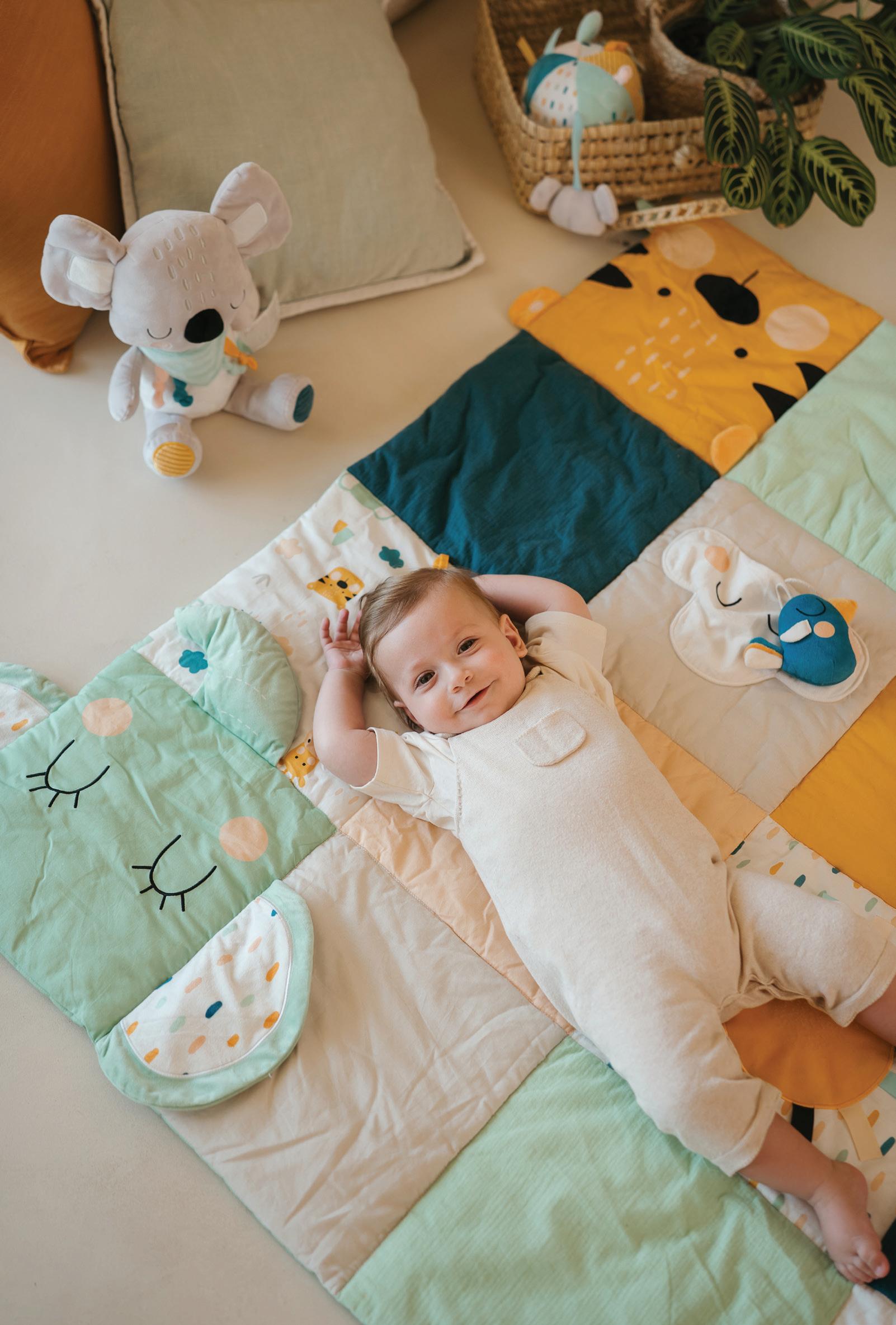 Stimulate the senses (sight, hearing, touch) with colors, textures, and sounds 0+ months