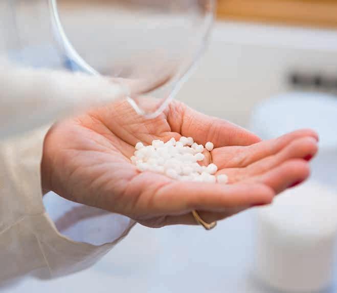The Haber-Bosch process is used for nitrogen fixation to produce synthetic nitrogen fertilisers which according to research is the origin of ~48 percent of the world’s food production. The team at the start-up NitroCapt, first funded in 2022, have now developed a novel, more environmentallyfriendly solution, using NitroCapt’s unique plasma process to create the same reactions as in lightning. “When there is lightning in the air, oxygen and nitrogen will combine and ultimately form nitrates. The earlier Birkeland-Eyde process was based on the discovery that NOx generated from artificial lightning, electrical discharges in the air, could be used to produce nitrate fertilisers,” explains Forsberg. The SUNIFIX® solution developed by NitroCapt is based on essentially the same pathway, but uses a high pressure microwave plasma rather than electrical discharges. “In this way, we split nitrogen and oxygen molecules into atoms, to form NO very effectively,” says Forsberg. “We then cool it