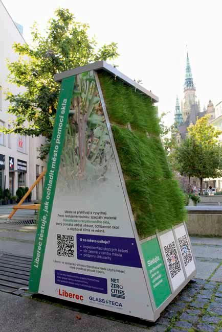 Glassiteca pilot tests porous boards made of circular glass material as platforms for greenery in public space in Liberec, Czechia.