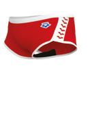 Quick-drying and breathable fabric. Elastic belt with interior arena logo branding. Team stripe on sides. arena vintage logo patch on leg.