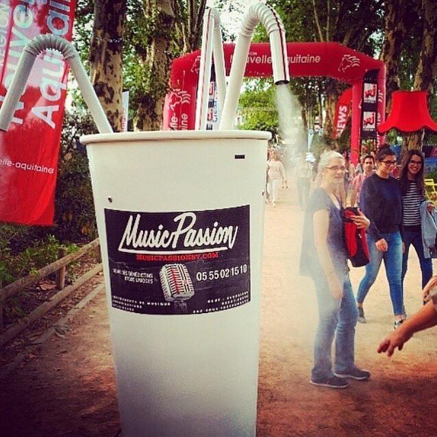 De 2,20 m de hauteur d’où sortent trois pailles géantes actionnées par 3 boutons tactiles pour la distribution de la boisson.