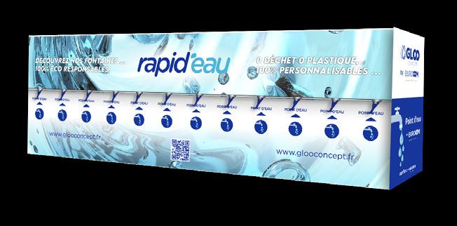 La Rapid’Eau permet la distribution d’eau potable à un débit suffisant pour distribuer de l’eau à des foules statiques comme en mouvement : 25 cl en 1 seconde lors de manifestations sportives, commerciales, culturelles ou festivals.
