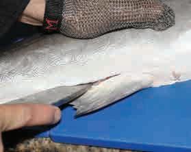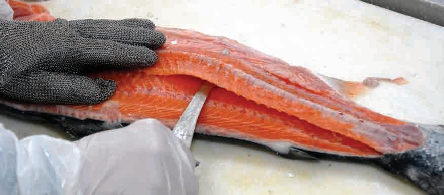 Finnish start-up Hailia, founded in 2021, helps seafood processors convert edible side streams into cooked, heat-stable products with a llet-like texture. Side streams are handled on-site, blended, and texturised using dedicated equipment, enabling high utilisation rates and new product formats for retail, food service, and industry. The approach shi s side streams from low-value outlets into the processor’s own branded food lines. Early uptake has been strongest in Finland, including by major retail partners, and the company is expanding trials elsewhere. Yield from a rainbow trout, for example, rises from about 70% to around 90% when side streams are upcycled into food.