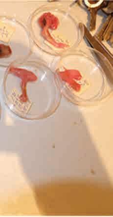 operation itself, documenting catches and discards, and recording the presence of non-target species. She tracked sessile benthic organisms such as white corals and bivalves, as well as sh eggs, when these appeared in the catch. Alongside this, she collected otoliths from commercial species for subsequent analysis, and logged wildlife sightings during the trip.