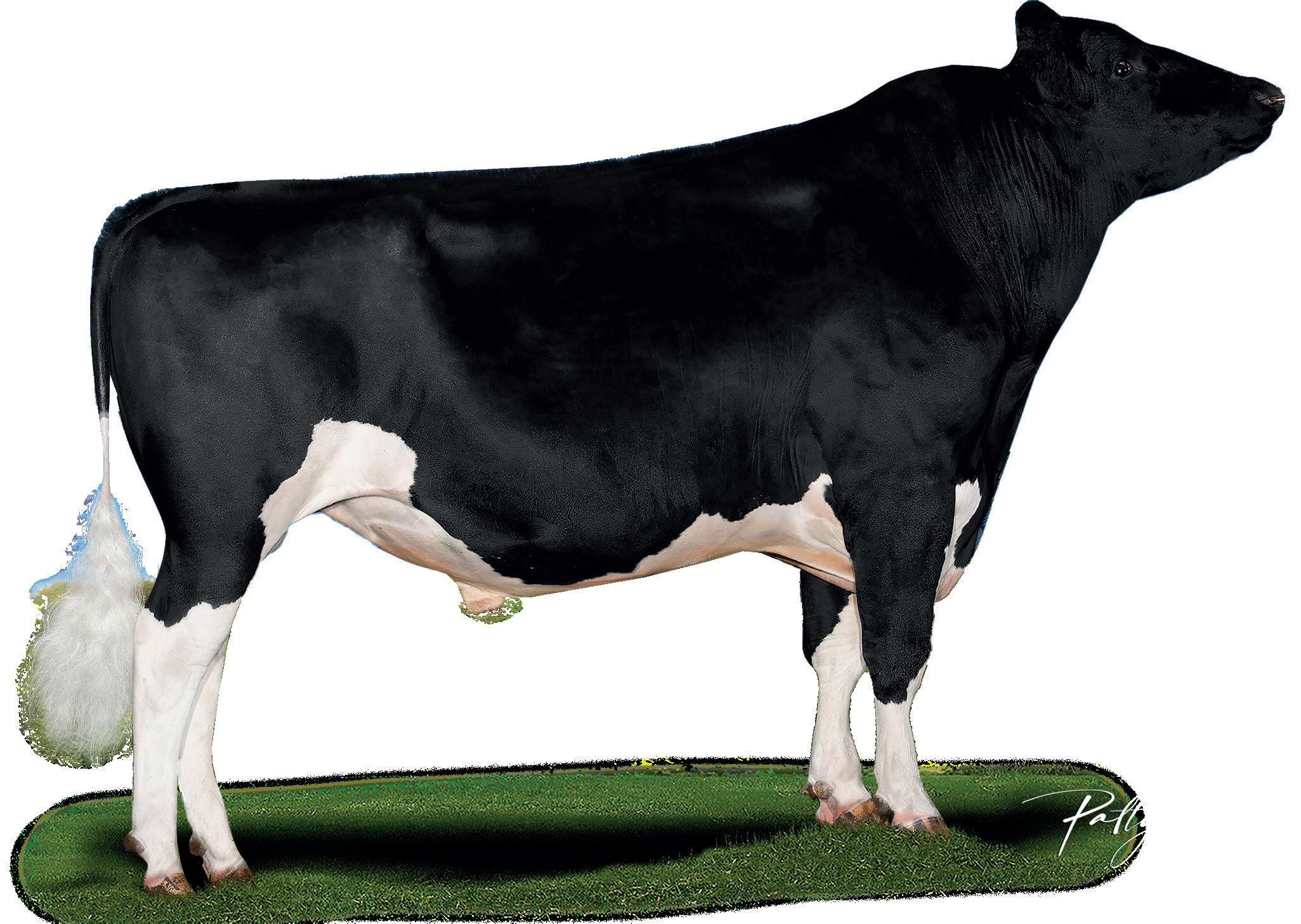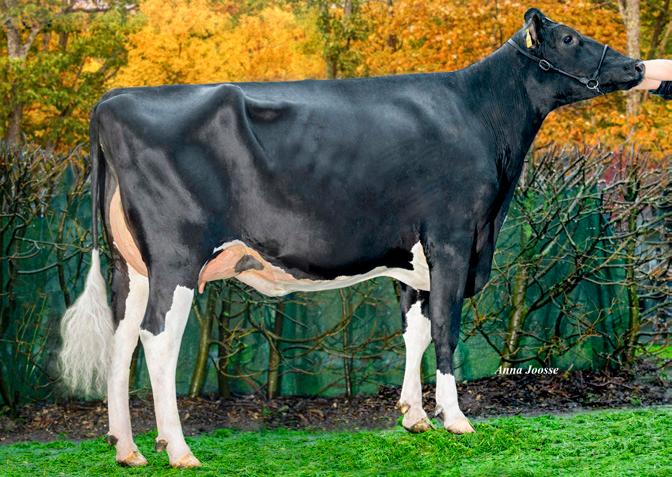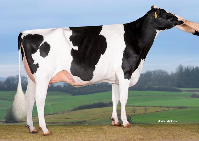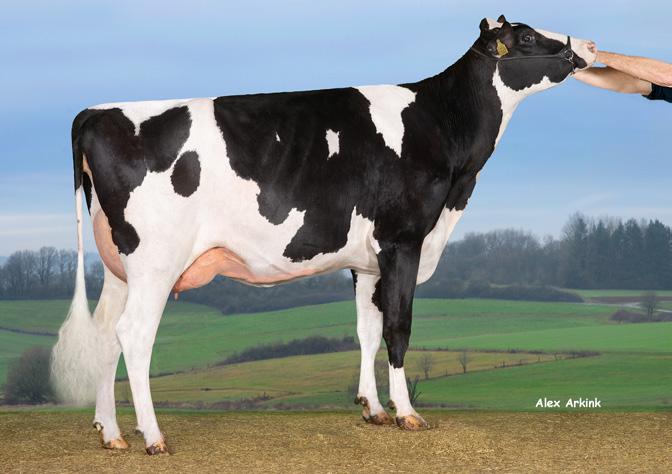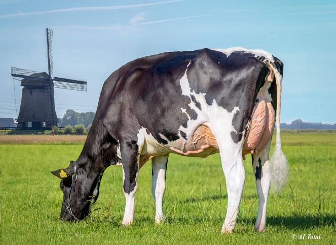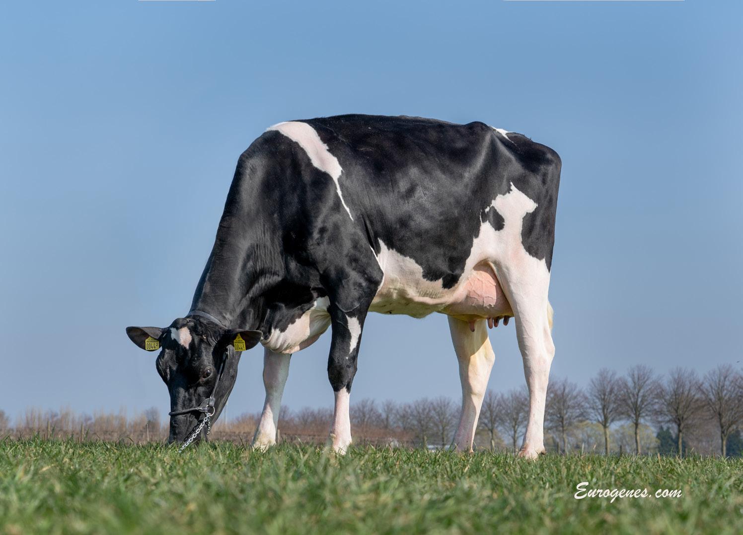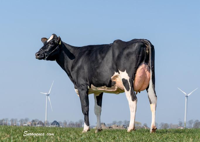 • Dam is sister to Gen Oana *RC GP-84-FR 2yr., she is dam to one of the completest gNVI B&W Genomic sires of the moment: DG Omega! He notes +350 gNVI with +2159kgM and +0.14%F and +0.01%P, +105 Feet&Legs and +108 Total Type