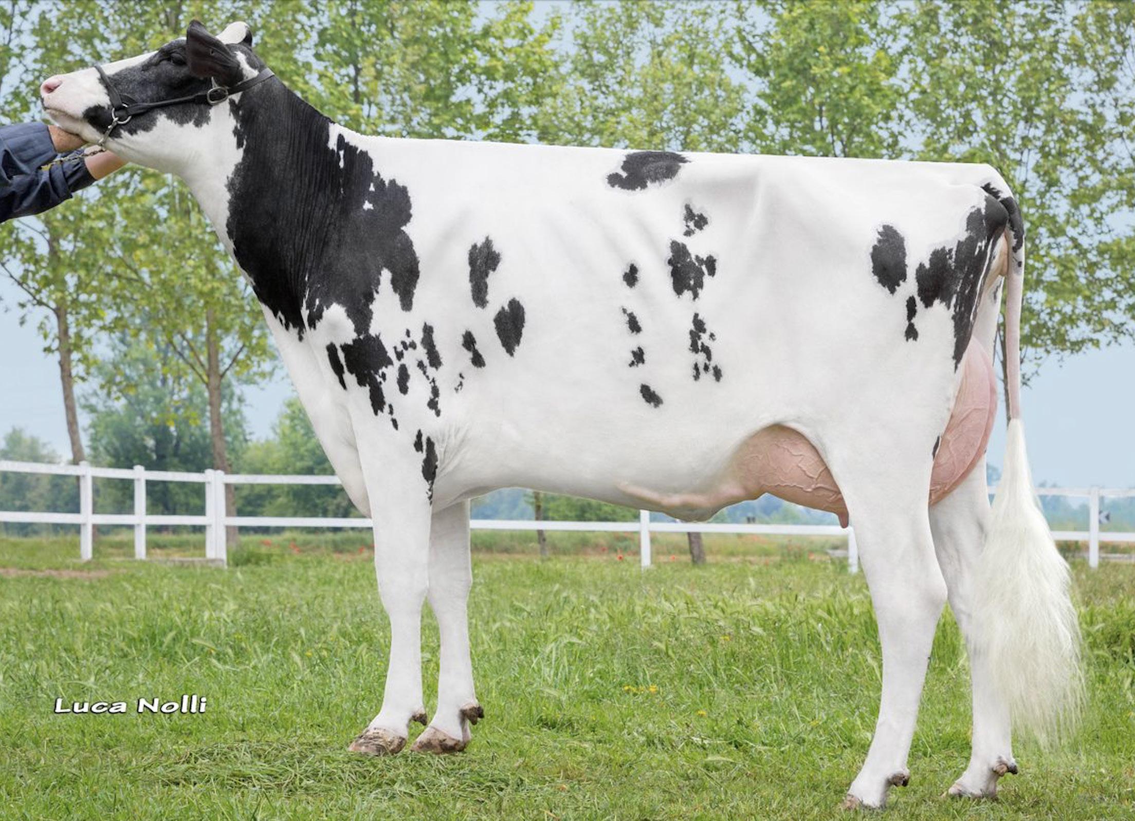 3 months fresh Pellegrino daughter with the maximum score for her Mammary System: VG-89-MS 2yr. and a current day production of 40kgM!