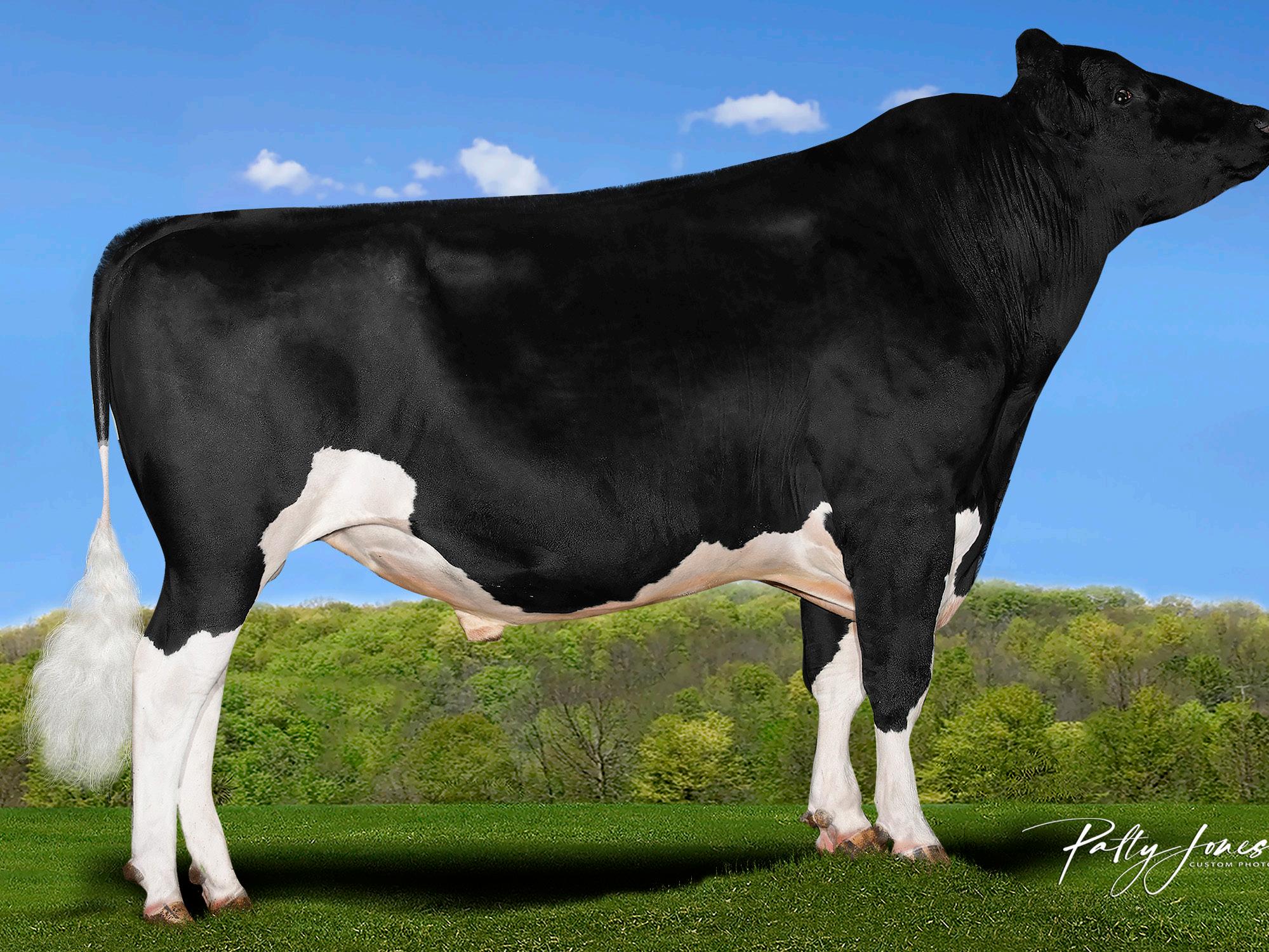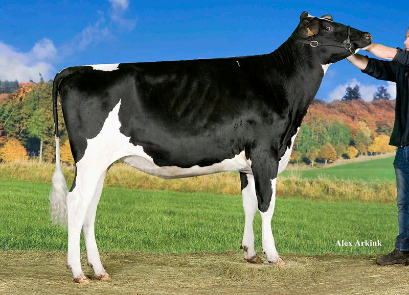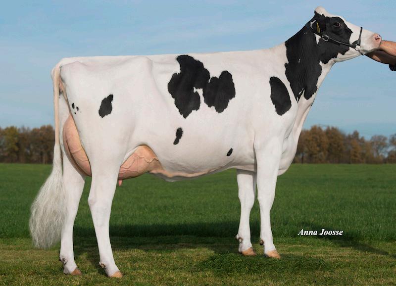 She is sired by the #1 source of the breed: Genosource Captain, he is the #1 GTPI daughterproven sire at +3331 GTPI, the #1 gNVI daughter proven sire at +325 GNVI and the #1 International RZG daughterproven sire at +153 RZG!