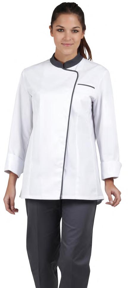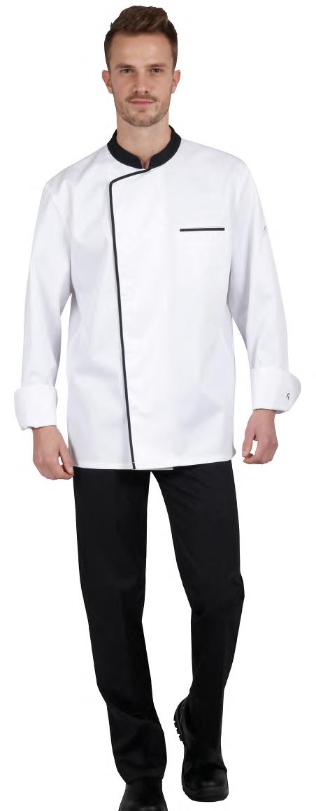 • Manches longues avec bouton clou et passant pour maintenir le revers de la manche