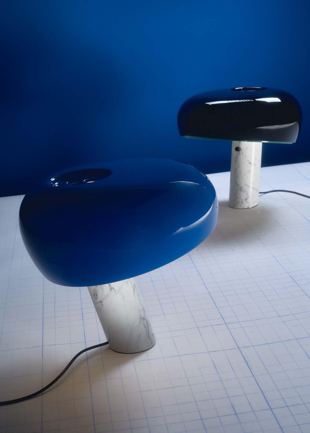 The Snoopy original with the black shade grew into a collection featuring green and orange versions. The latest addition, with a navy-blue shade, was inspired by a hue used by Achille and Pier Giacomo on their Sciuko lamp for Flos in 1966.