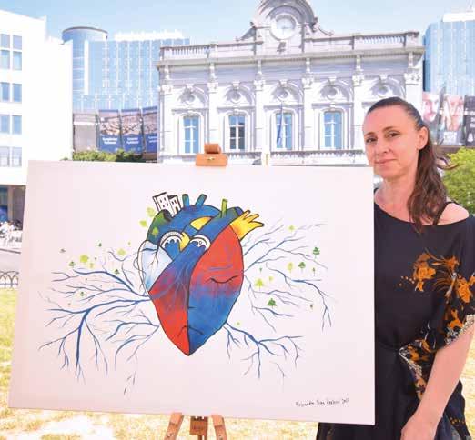 Aleksandra Nina KneževićmitihrerInterpretationdesBlauensHerzens,entstanden am 22. Juni auf dem Place du Luxembourg in Brüssel, wo sie gemeinsam mit anderen Künstlerinnen Werke gegen die Naturzerstörung geschaffen hat.