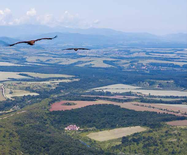 Mönchsgeier wieder in ihrer angestammten Heimat im Balkangebirge anzusiedeln, war das Ziel des von der EU geförderten LIFE-Projekts, das im Juli 2022 nach insgesamt sieben Jahren auslief. Beteiligt waren neben EuroNatur die beiden bulgarischen Naturschutzorganisationen Green Balkans und Fund for Wild Flora and Fauna, die spanische Regionalregierung der Extremadura sowie die Geierexper tinnen der Vulture Conservation Foundation. EuroNatur hat das Projekt vor allem mit Expertise im Bereich der natürlichen Regionalentwicklung auf dem Balkan bereichert. Neben der gezielten Wiederansiedlung von Mönchs- und Gänsegeiern in der Region hat das Projekt zum Ziel, die Nahrungsgrundlagen für Geier langfristig zu sichern, die Auslegung von Giftködern zu unterbinden und den Tod durch Stromschläge an ungesicherten Strom leitungen zu minimieren.