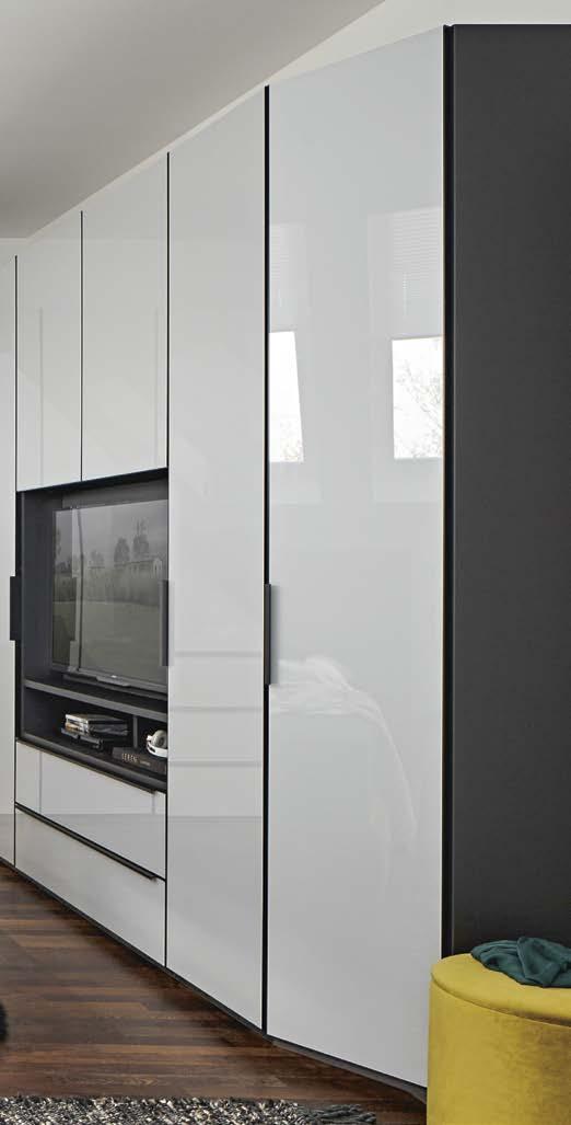 Wer Ordnung hält, schläft besser — hat jemand Schlaues mal gesagt. Global Libro 100 hat das sehr ernst genommen: Durch die individuellen Anpassungen über die Tiefen-, Höhen- und Breitenkürzung sowie die seitliche und Rückwand-Abschrägung kann jedes Schlafzimmer passgenau ausgestattet werden. Hier findet alles seinen Platz, damit Du guten Gewissens durchschlafen kannst.