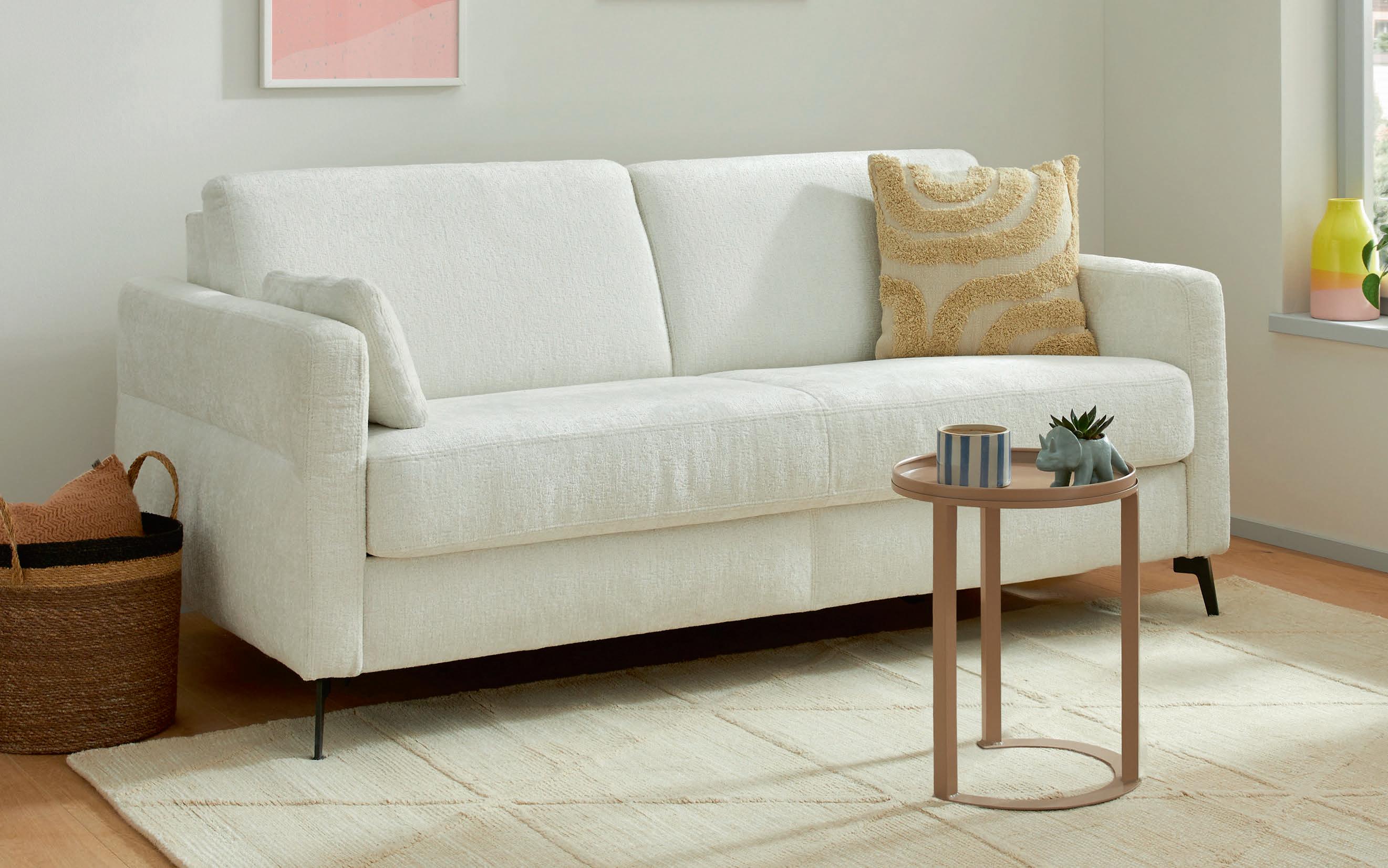 02 Global Wohnen Rafaela 2.0 Sofa in Leder Doppio pearl, Metallfuß schwarz, inkl. Kopfteil verstellbar, BHT ca. 208 × 86 × 107 cm, 2.498,-* Global Wohnen Rafaela 2.0 Sofa als Variante inkl. 1 Relaxfunktion rechts motorisch, 2.998,–*