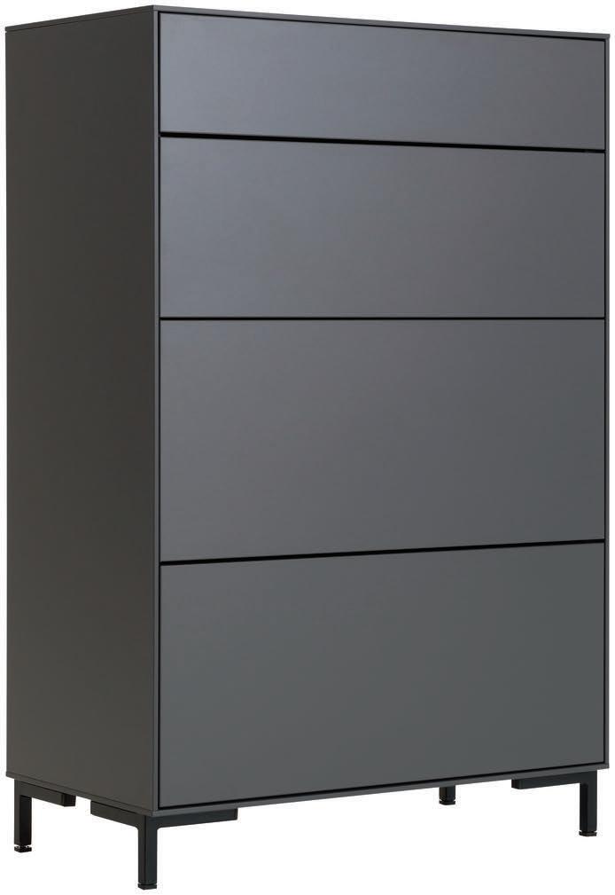04 Global Wohnen Viana Kommode, Korpus außen in Balkeneiche Furnier, Front in Lack basalt, Korpus innen in Lack weiß matt, Metallgriff anthrazit, BHT ca. 151 × 83 × 46 cm, 1.998,–
