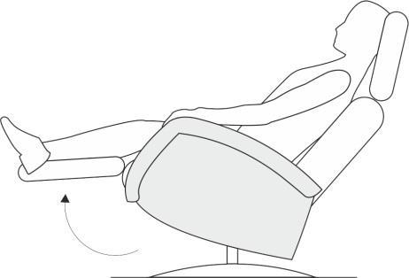 Funktion: mitlaufendes Armteil in Kombination mit motorischen Funktionen Beim Herausfahren der Fußstütze senken sich gleichzeitig die Armteile in eine bequeme Komfortposition ab.
