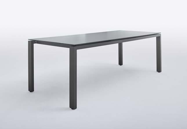 10. tisch tendri. platte hpl anthrazit, schweizer kante, gestell aluminium pulverbeschichtet anthrazit, bht ca. 220x74x95 cm. 1848.-*