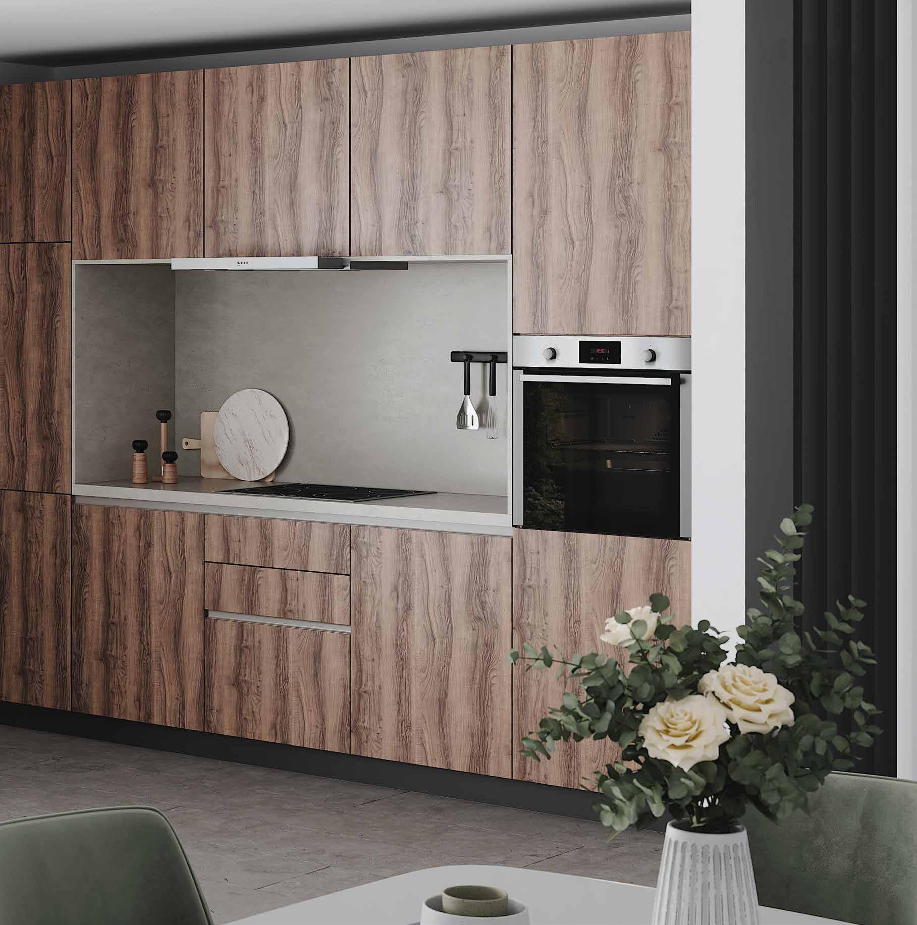 Wunderbar kontrastreich: Beton- trifft Holz-Optik. Ideal für alle, die sich nicht zwischen dem industriellen, urbanen BetonLook und der warmen, gemütlichen Optik von Holz entscheiden können. Wir bringen für Sie beides in perfekte Harmonie.