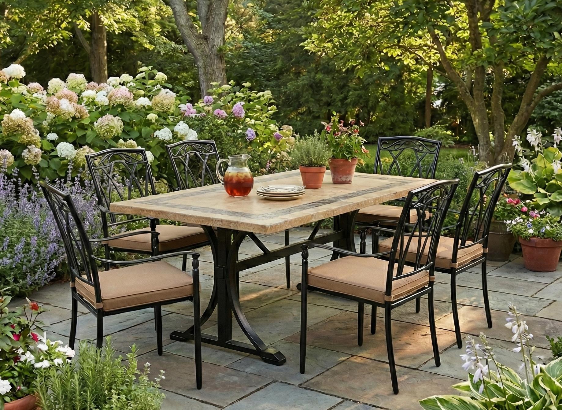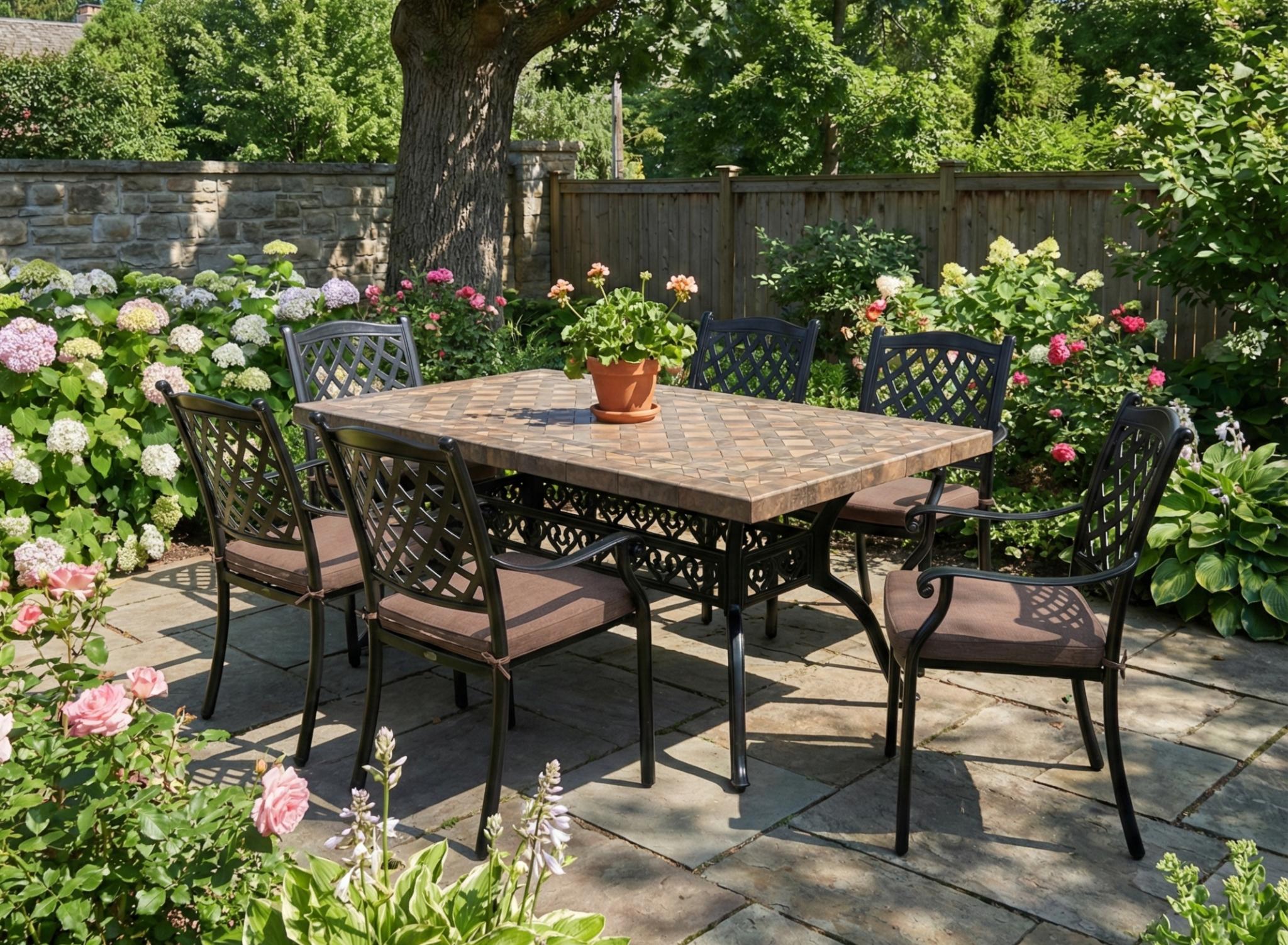 TheFleurinocastaluminumdiningtable combines lasting durability with a touch of classic charm, making it a lovely centerpieceforyourpatioorgarden.Its rust-resistant matte black finish and intricate lattice design are built to withstandtheelements.Sturdyyeteasy to move, this low-maintenance piece brings style, elegance and effortless comforttoyourfavoriteoutdoorretreat.