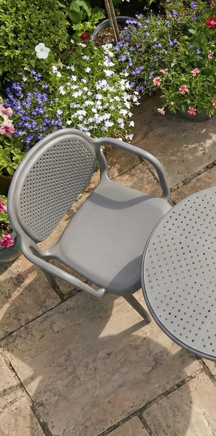 The Mia Chair in nickel grey combines style and practicality, perfect for any space. Crafted from durable polypropylene with UV inhibitors, its contemporary colour lasts. Lightweight and sturdy, the contoured design offers lasting comfort, while its stackable feature ensures easy storage and mobility.