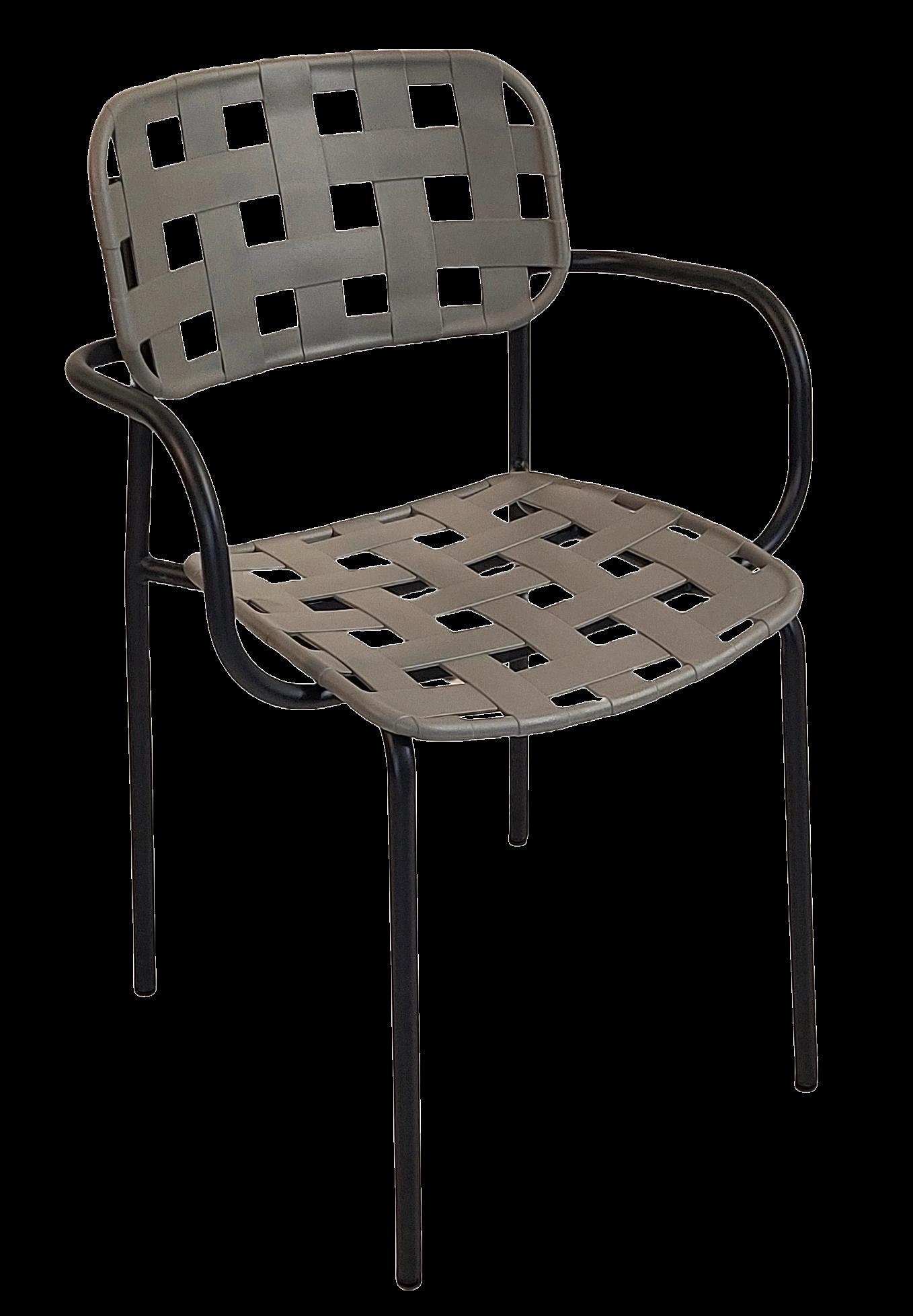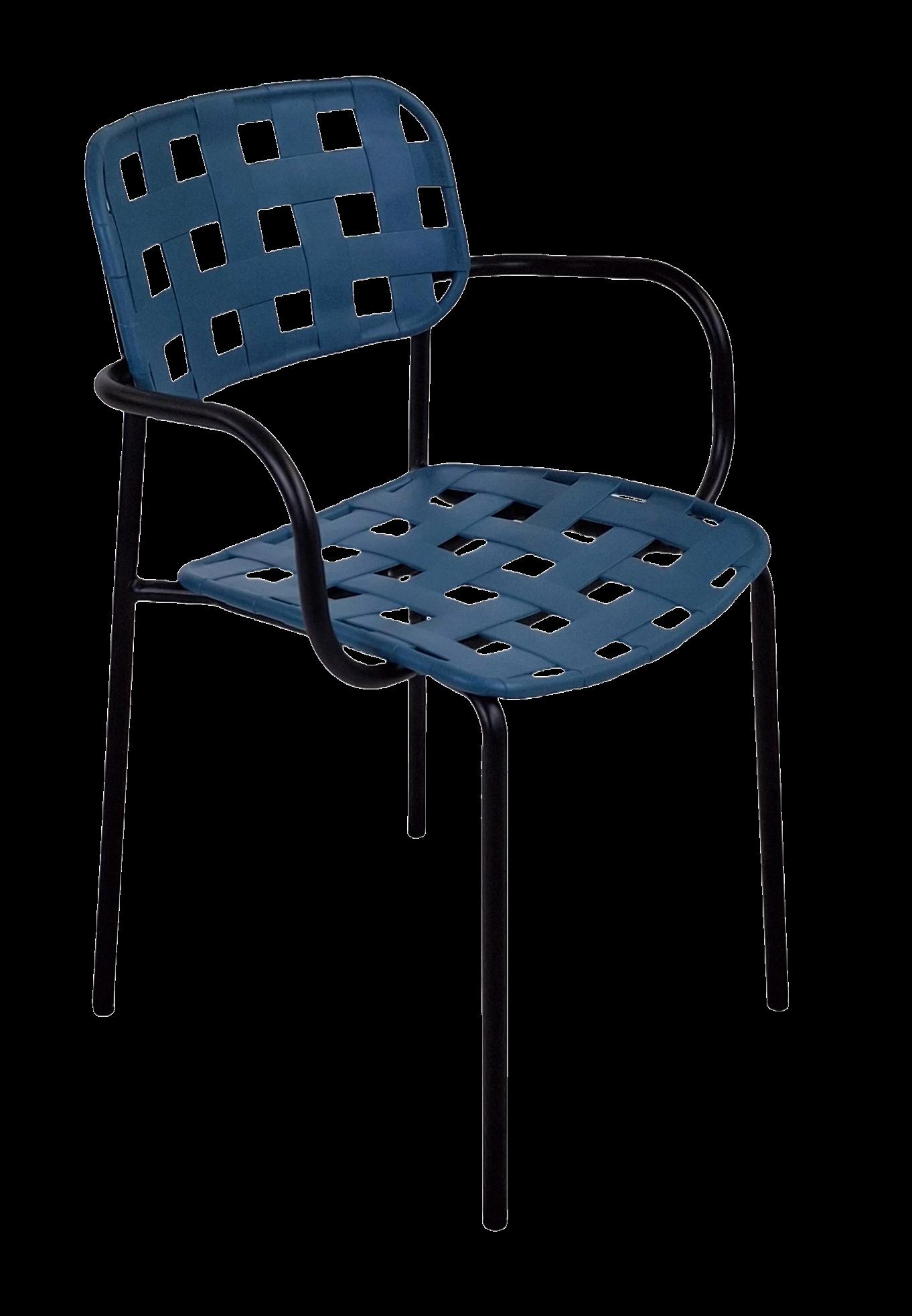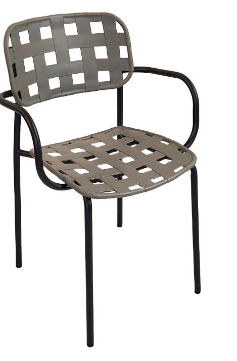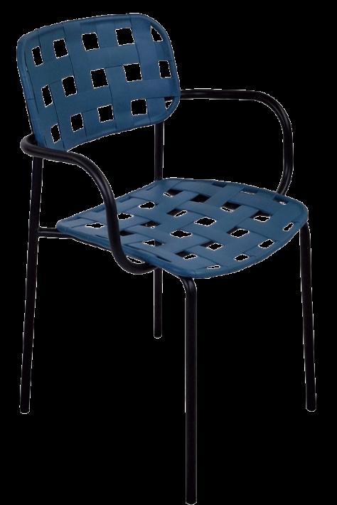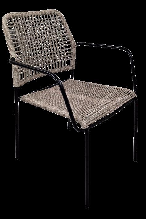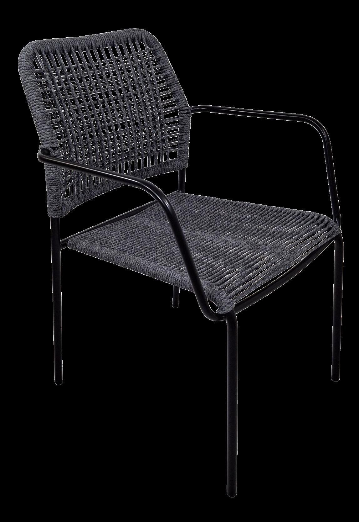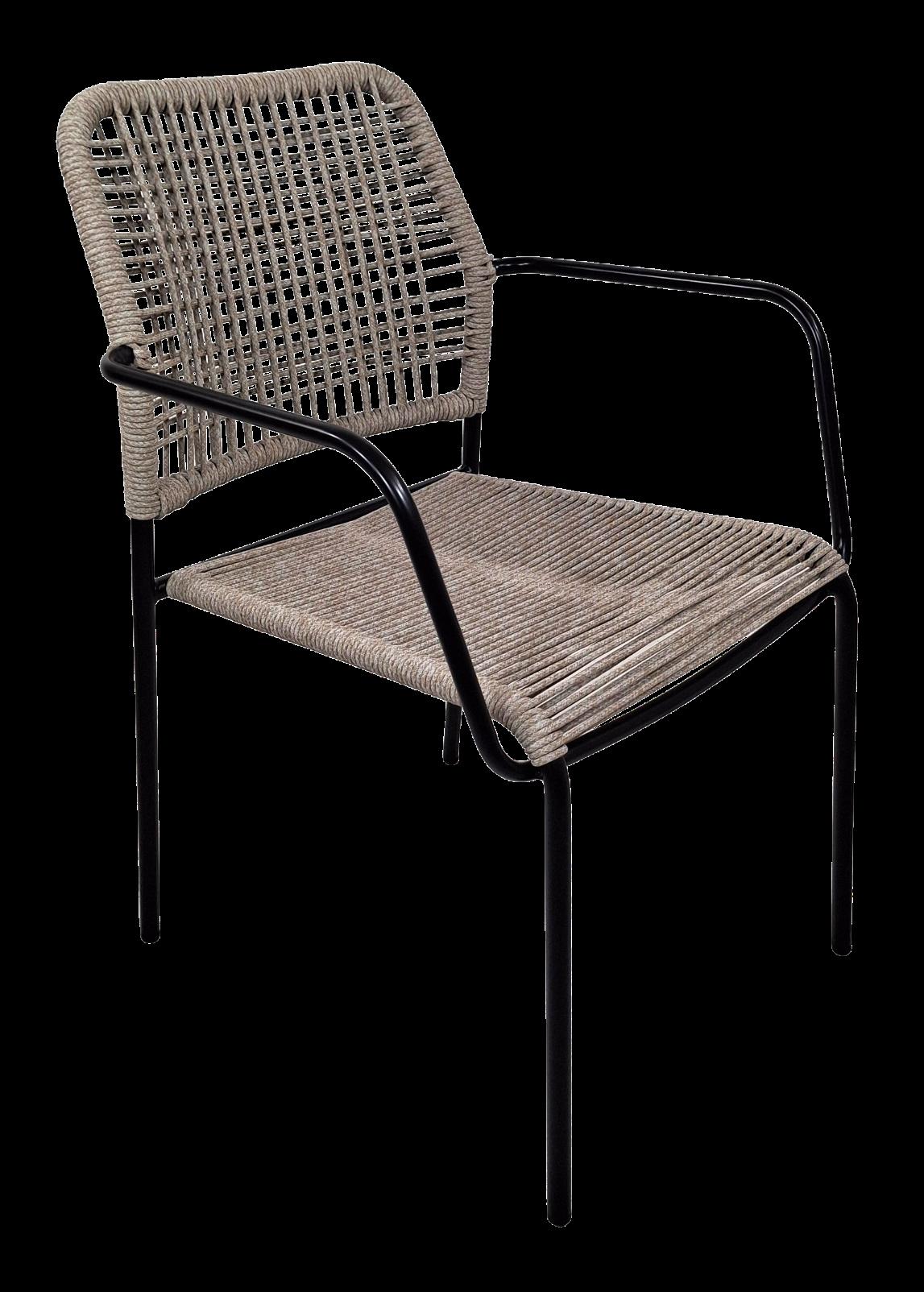 Experience modern comfort with the Rivella black powder-coated steel stacking chair, featuring handwoven slate grey textilene rope for a sleek, contemporary look. Its ergonomic design offers exceptional comfort and durability, making it a stylish and practical choice for any outdoor setting.