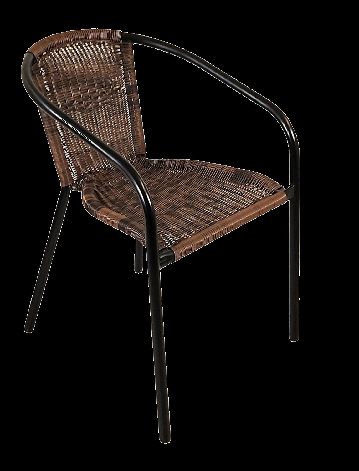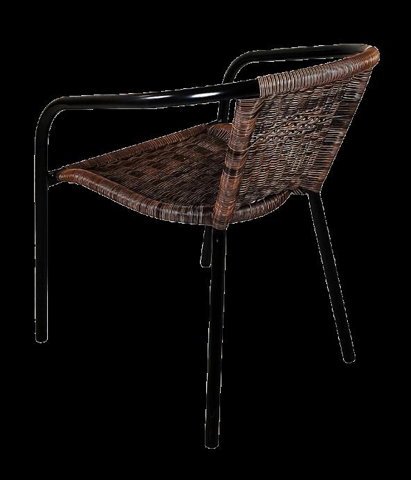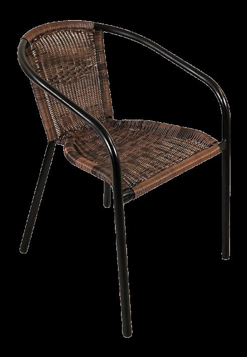The San Remo Chair features a comfortable curved back and a black, slightly glossy frame. The smooth hand-woven variegated brown resin wicker is durable and stylish. Stackable for easy storage, it’s ideal for bistro tables. Made of strong tubular steel with a weather-resistant powder-coated finish, it comes pre-assembled.