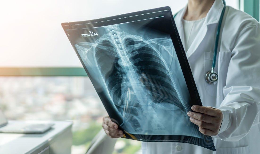 Figure 1: Chest radiograph and high-resolution CT thorax.