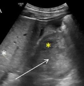 The full blood count with differential showed leukocytosis with elevated white blood cells (15.6x109/L), elevated neutrophils (14.2x109/L), and elevated C-reactive protein (418 mg/L), with normal haemoglobin (113 g/L) and platelet count (238x109/L). Electrolytes and liver function tests were deranged, with hyponatraemia (131 mmol/L), hypokalaemia (3.2 mmol/L), high bilirubin (36 µmol/L), high alkaline phosphatase (449 U/L), and high alanine transaminase (69 U/L). Renal function tests and coagulation profile were normal. The venous blood gas showed raised lactate (2.6 mmol/L) and a normal pH and glucose.