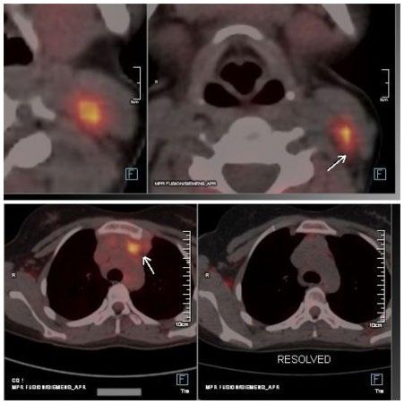 Figure 1: PET-CT image of relapse and response to nivolumab.