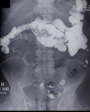 both arterial and venous vascularity. To confirm if the origin of air foci within the lesion was from the bowel loops, a small bowel series was done.